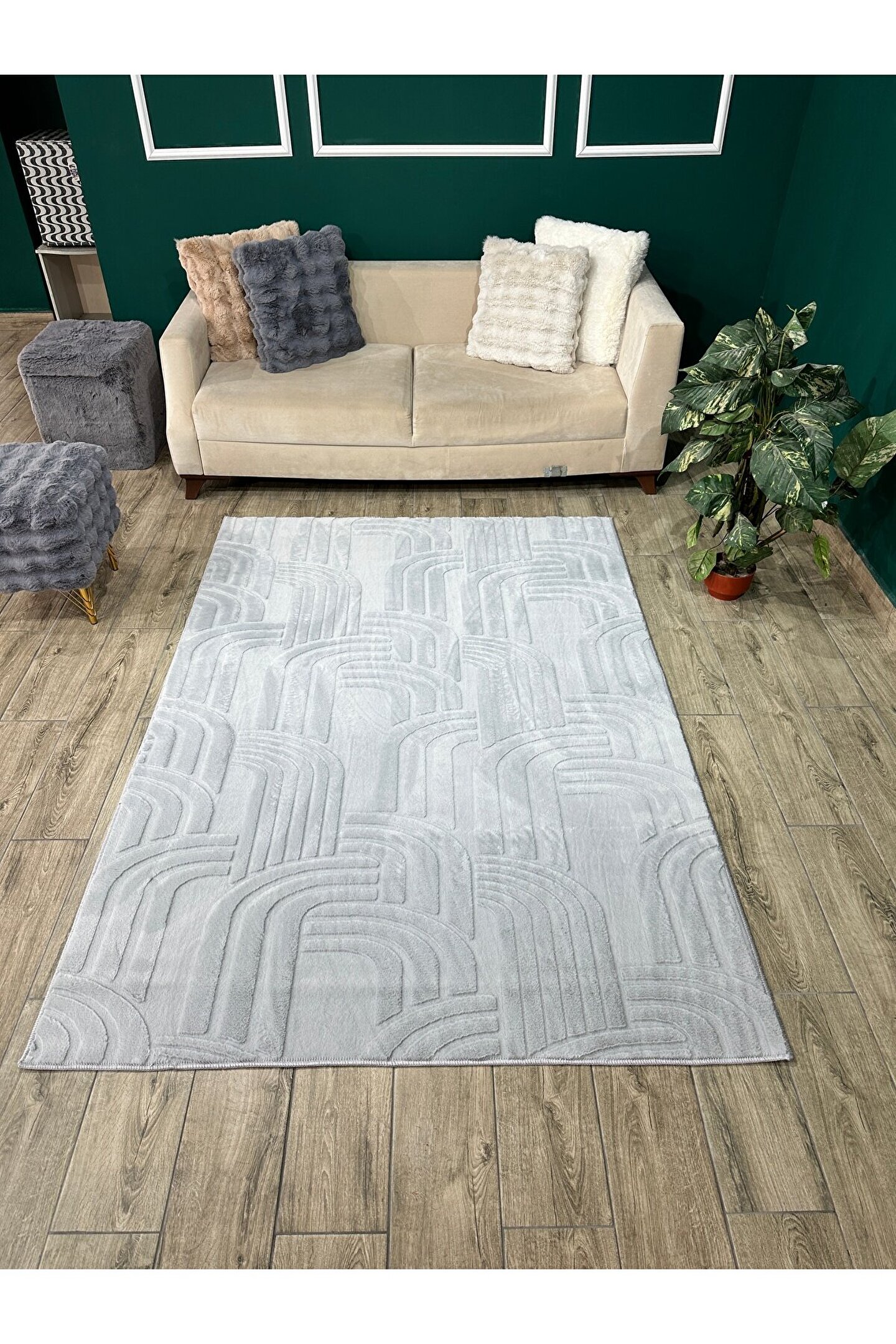 Freya Home Modern Yumuşak Dokulu Tüy Dökmez Yıkanabilir Tavşan Tüyü Peluş Halı Gri