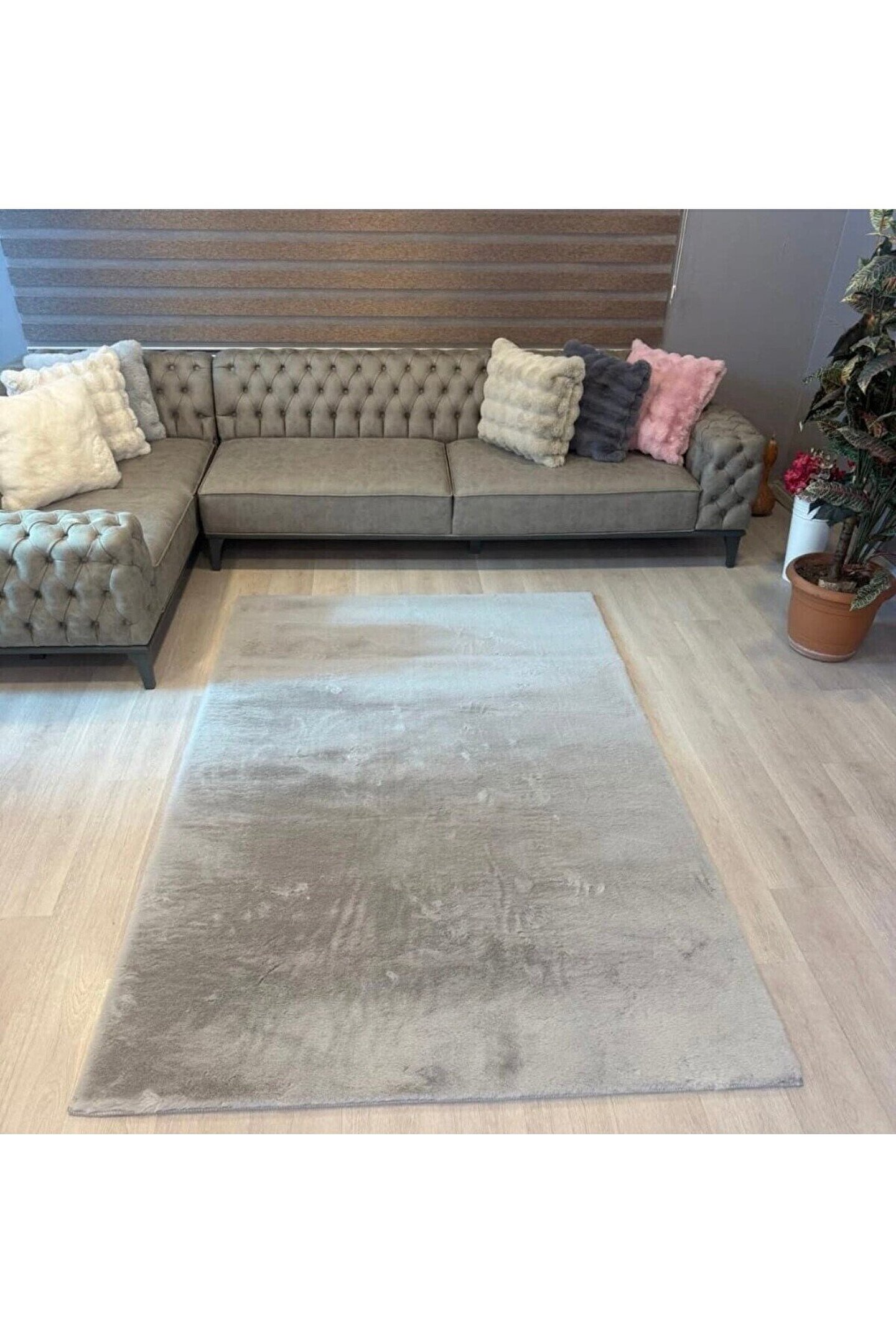 Freya Home Premium Yumuşacık Tavşan Tüyü Serisi Tüy Dökmez Kaymaz Dokuma Taban Peluş Halı Gri