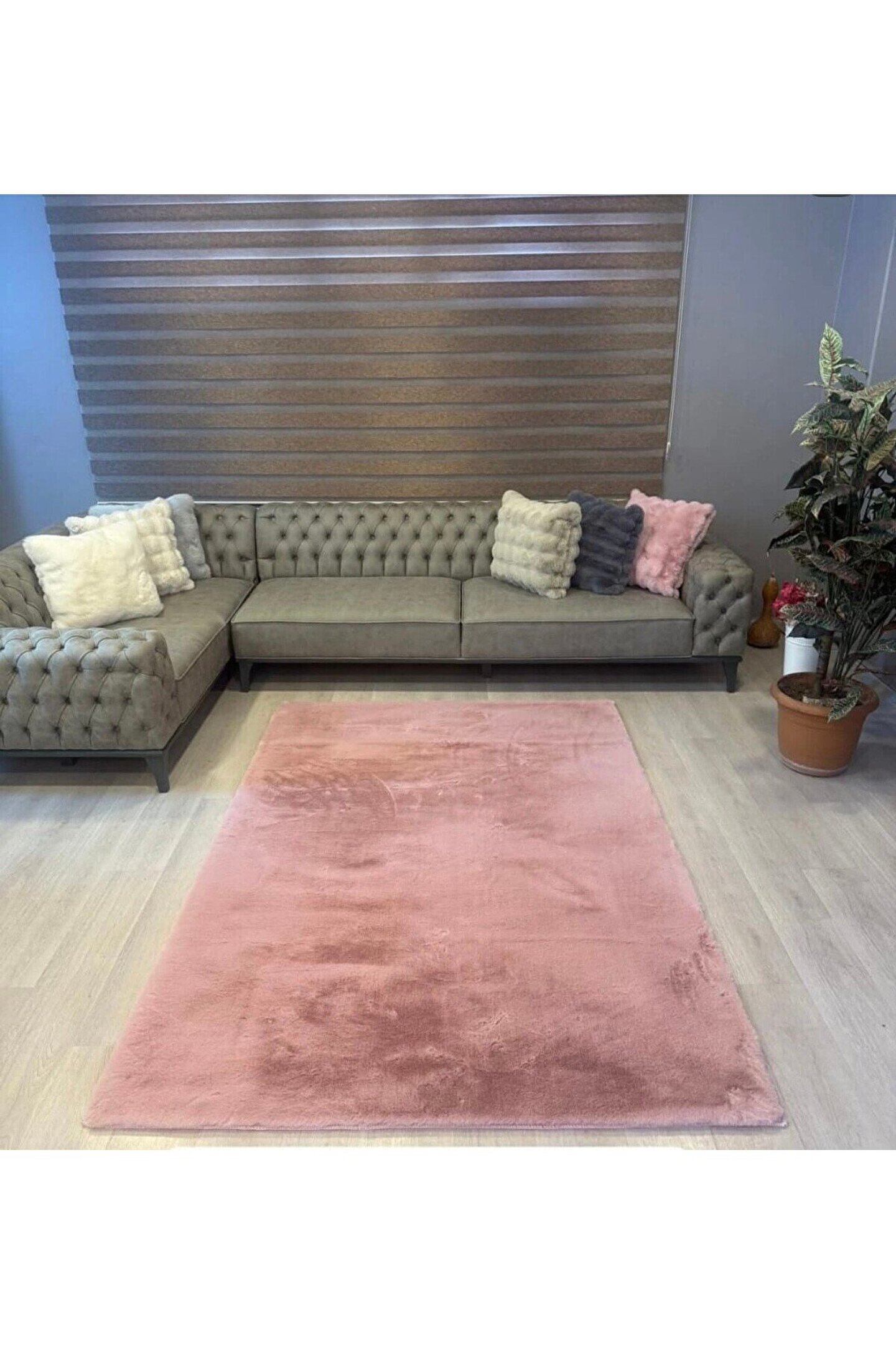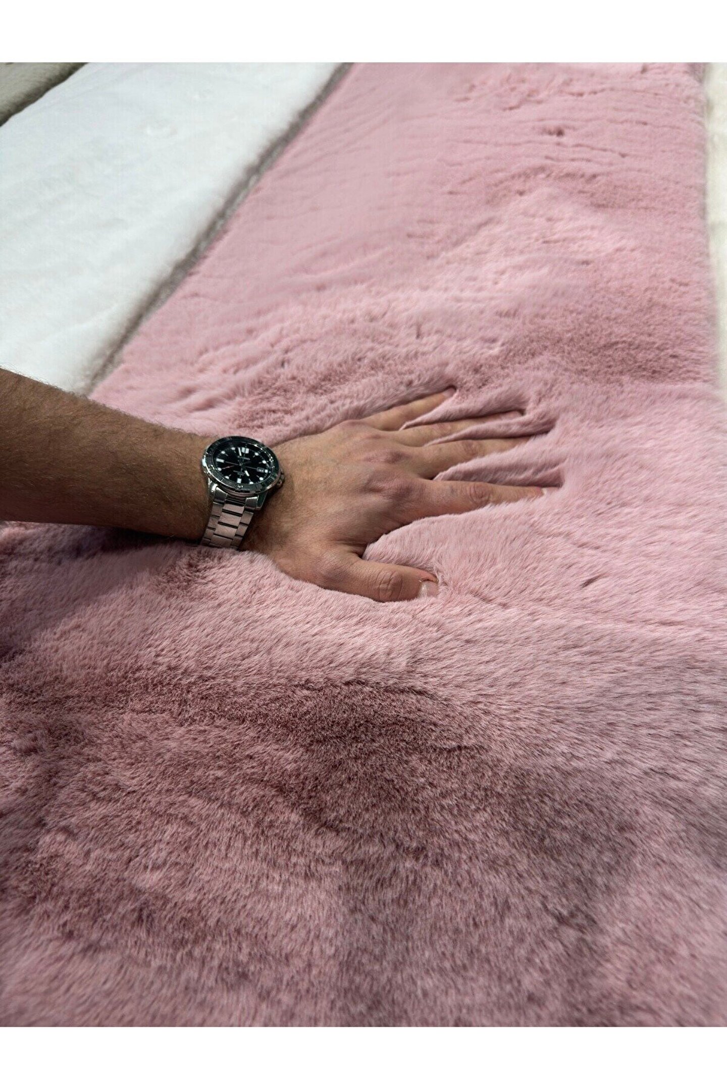Freya Home Premium Yumuşacık Tavşan Tüyü Serisi Tüy Dökmez Kaymaz Dokuma Taban Peluş Halı Pudra