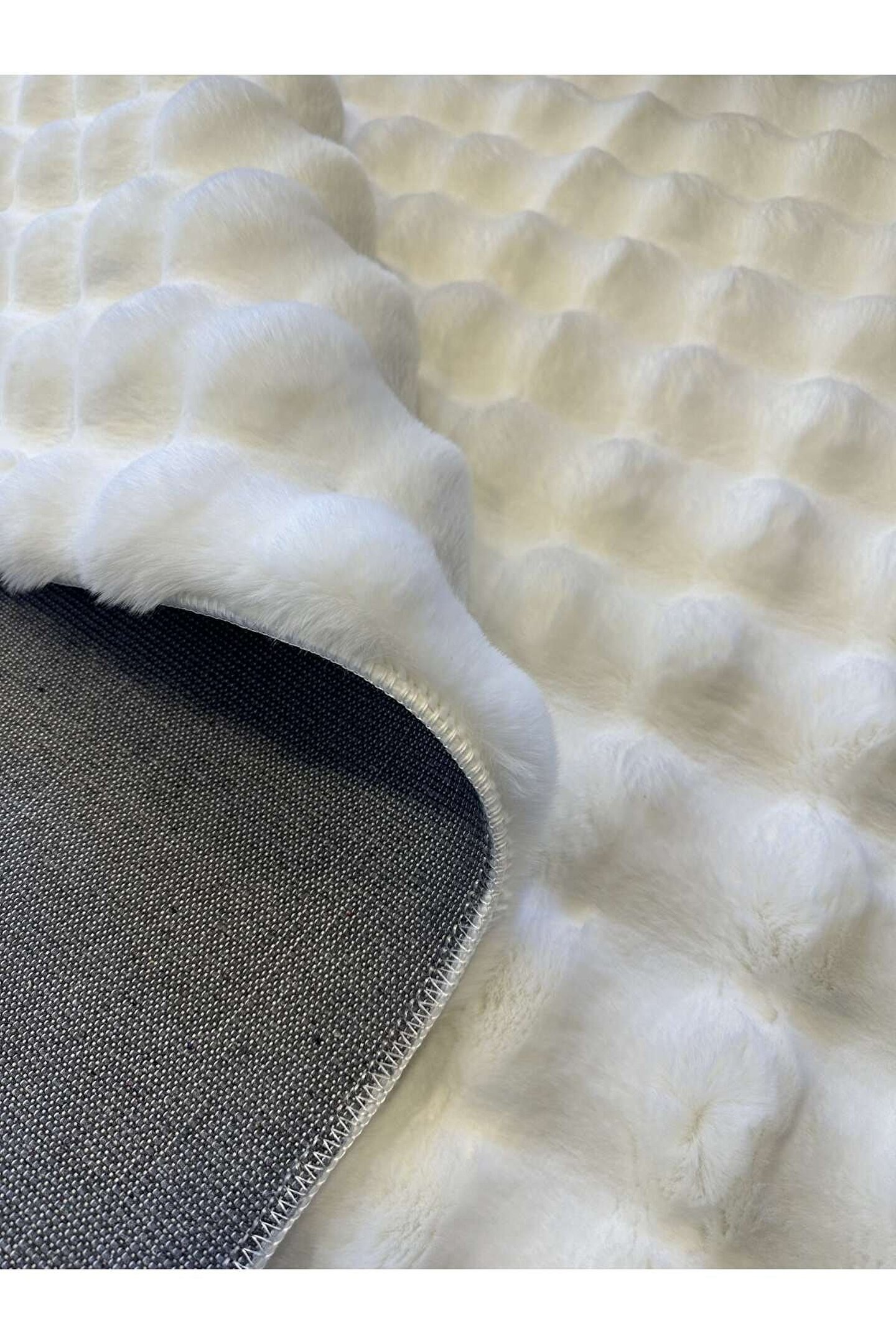 Freya Home Yumuşak Dokulu Tavşan Tüyü Peluş Yıkanabilir Kaymaz Taban Salon Halısı Çocuk Halısı Beyaz