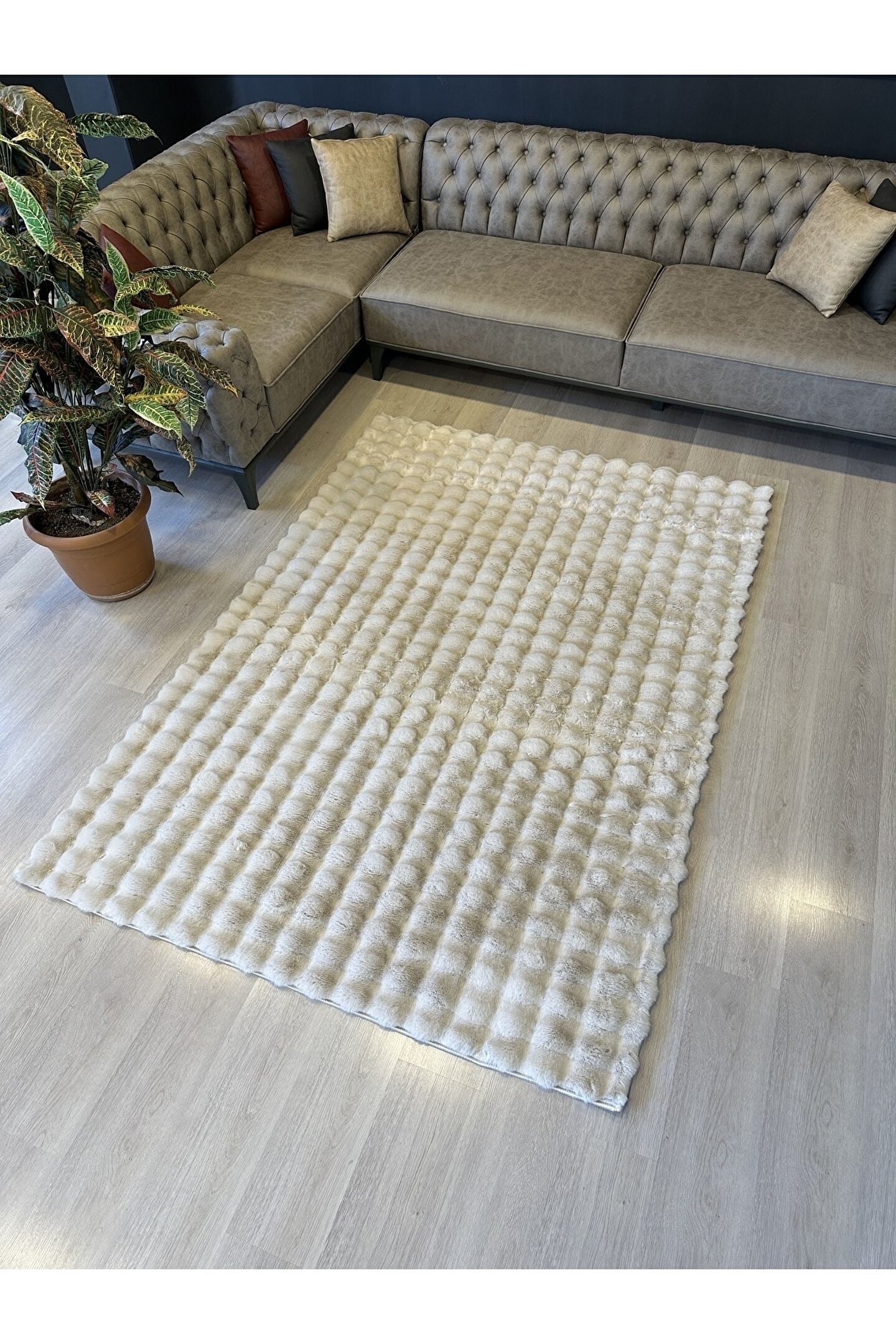 Freya Home Yumuşak Dokulu Tavşan Tüyü Peluş Yıkanabilir Kaymaz Taban Salon Halısı Çocuk Halısı Taş