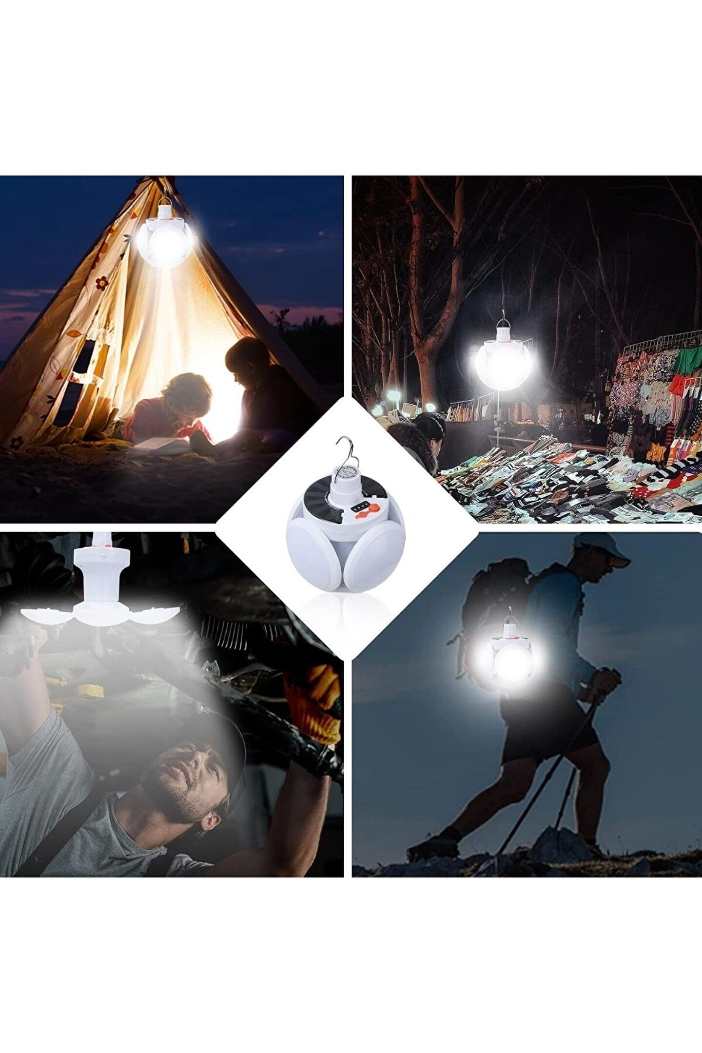 BUFFER® Solar Panelli Şarjlı 5'li Katlanabilir Acil Durum Kamp Lambası