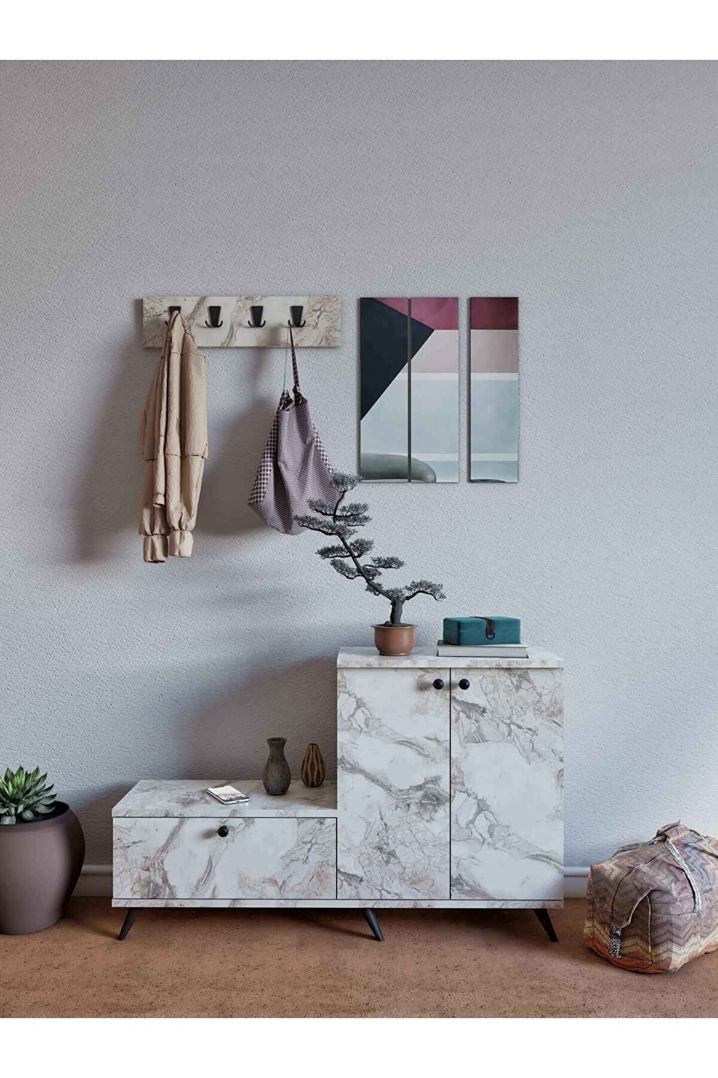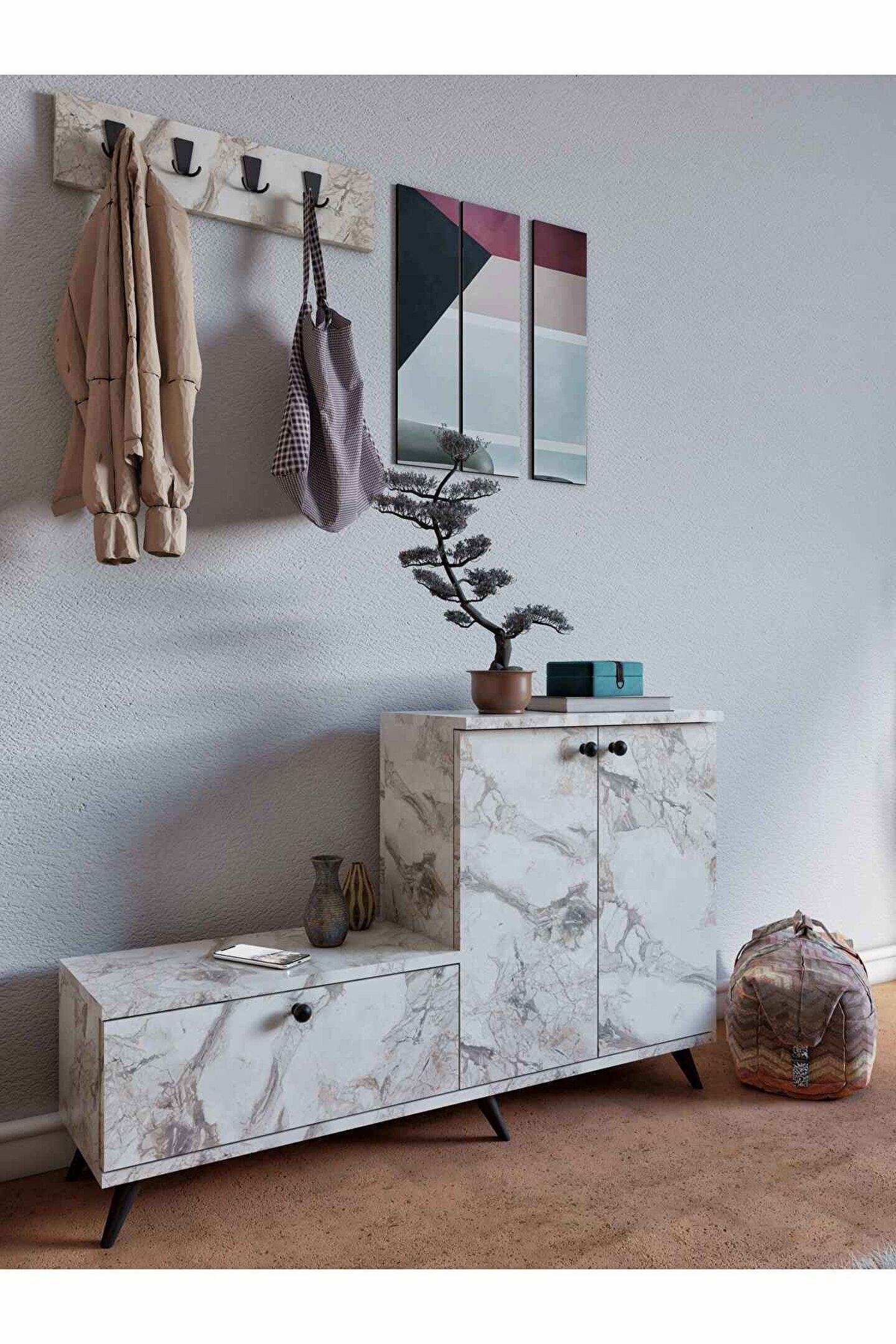 EVVA AYAKKABILIK ; Ürün Ölçüleri G120 cm D30 cm Y76 cm G:Genişlik / D:Derinlik / Y:Yükseklik ; Malzemeler GÖVDE: EFES SUNTALAM KAPAK: EFES SUNTALAM ; Kullanılan Tüm Malzemeler TSE onaylı, E1 Kalitesinde olup kanserojen madde içermez.; ; Montajı kolaylaştıracak biçimde kurulum talimatı yer almaktadır.; Kaliteli malzemesi ve özenle tasarlanmış modern yapısıyla uzun yıllar boyunca kullanabileceğiniz bir üründür.; Ayakkabı dolabı minimal ölçüleri sayesine dar alanlar için uygundur.; Kapalı saklama alanları ile depolama ihtiyacınızı karşılayacak nitelik taşır.; Kapaklı tasarımı, ayakkabılarınızı tozdan ve dış etkenlerden korurken ayakkabılığın üst yüzeyi vazo, anahtarlık ya da çiçek gibi dekoratif objeler için ekstra bir alan olarak tercih edilebilir.; Seriye ait diğer ürünleri kombin önerilerinde bulabilirsiniz.; ; Montaj Ürünlerimiz özel kargo paketinde demonte olarak teslim edilir.; Paketlerde gerekli kurulum şeması, tüm vida ve aksesuarların montaj şeması ile uyumlu malzeme torbası ve kullanma kılavuzu çıkmaktadır.; Kurulum müşteriye aittir.; Hızlı ve hatasız kurulum için montaj şeması bulunmaktadır.; Montaj İçin Gerekli Aletler *Şarjlı Tornavida *Çekiç ; İade Koşulları Ürünü kargodan teslim alınırken paketler mutlaka kontrol edilmeli, hasarlı paket veya ürünler teslim alınmamalı ve kargo yetkilisine hasar tespit tutanağı hazırlanması doğrultusunda yardım talep etmeniz gerekmektedir.; ; Ürün resimlerindeki aksesuarlar teşhir amaçlı olup, fiyata dahil değildir.; ;