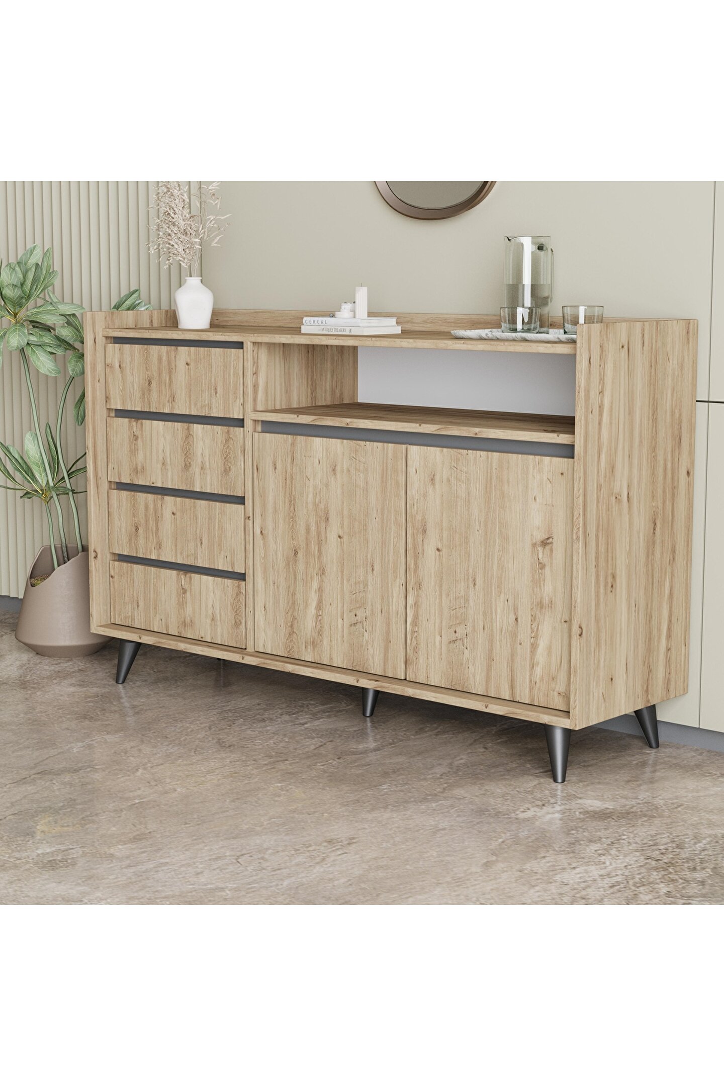 Genişliği 140 cm olan bu konsol, genişeşyalarınızı rahatça saklamanız için idealdir.
