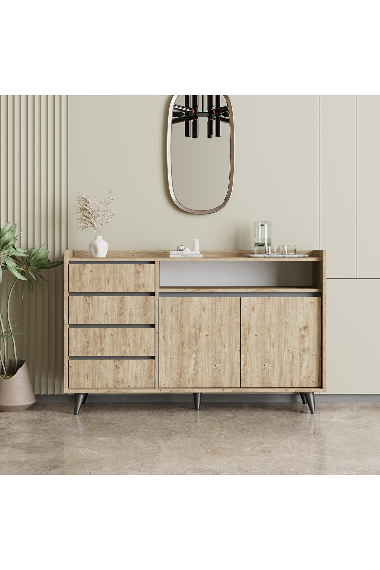 Genişliği 140 cm olan bu konsol, genişeşyalarınızı rahatça saklamanız için idealdir.