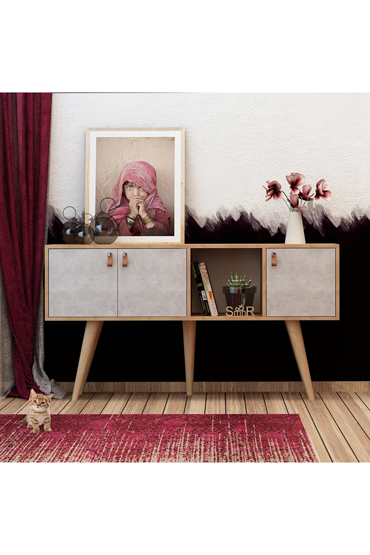 Montajı kolaylaştıracak biçimde kurulum talimatı yeralmaktadır .Minimal tasarımı ile gerek makyaj masası, gerek giriş mobilyasıolarak kullanılabilecek şekilde dar alanlarda çözüm ortağınız olacaktır. Tümmekanlar da derleyici dekorasyon ögesi olarak kullanılmaya uygundur.