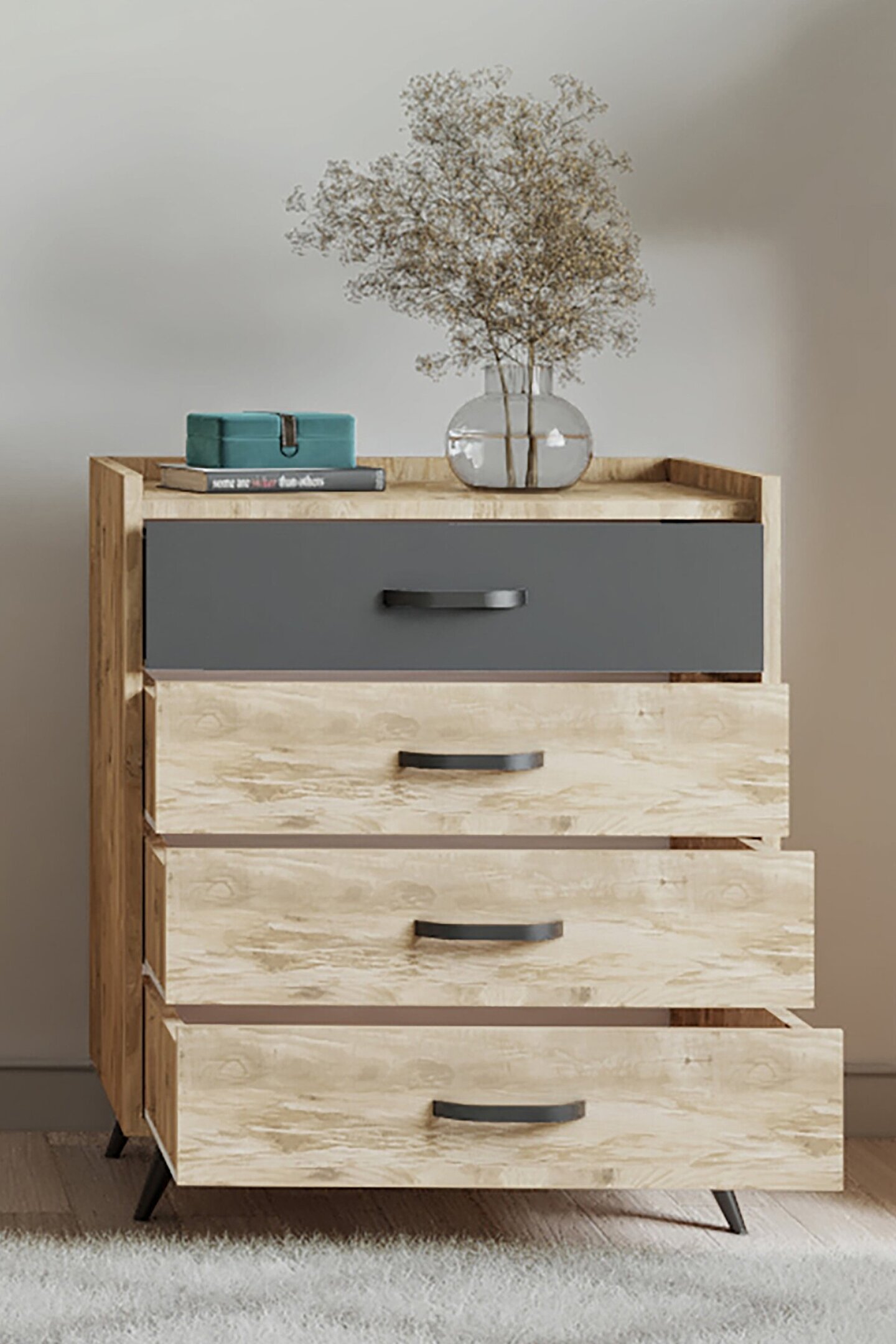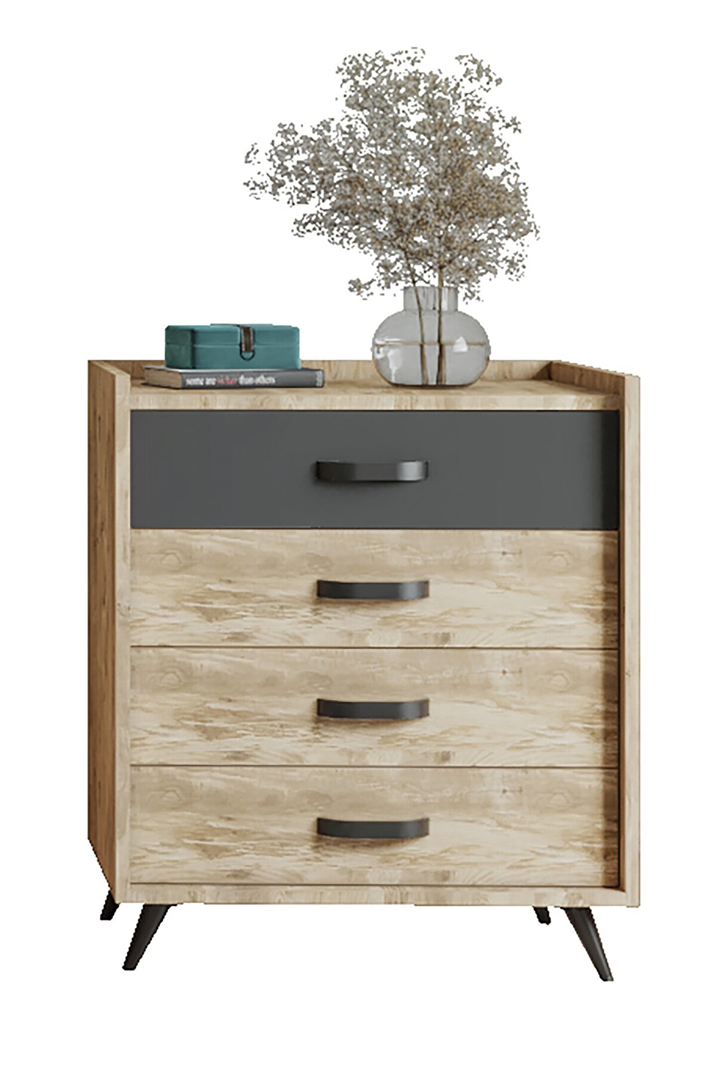 FUHO İda 4 Çekmeceli Şifonyer Atlantik Çam-antrasit