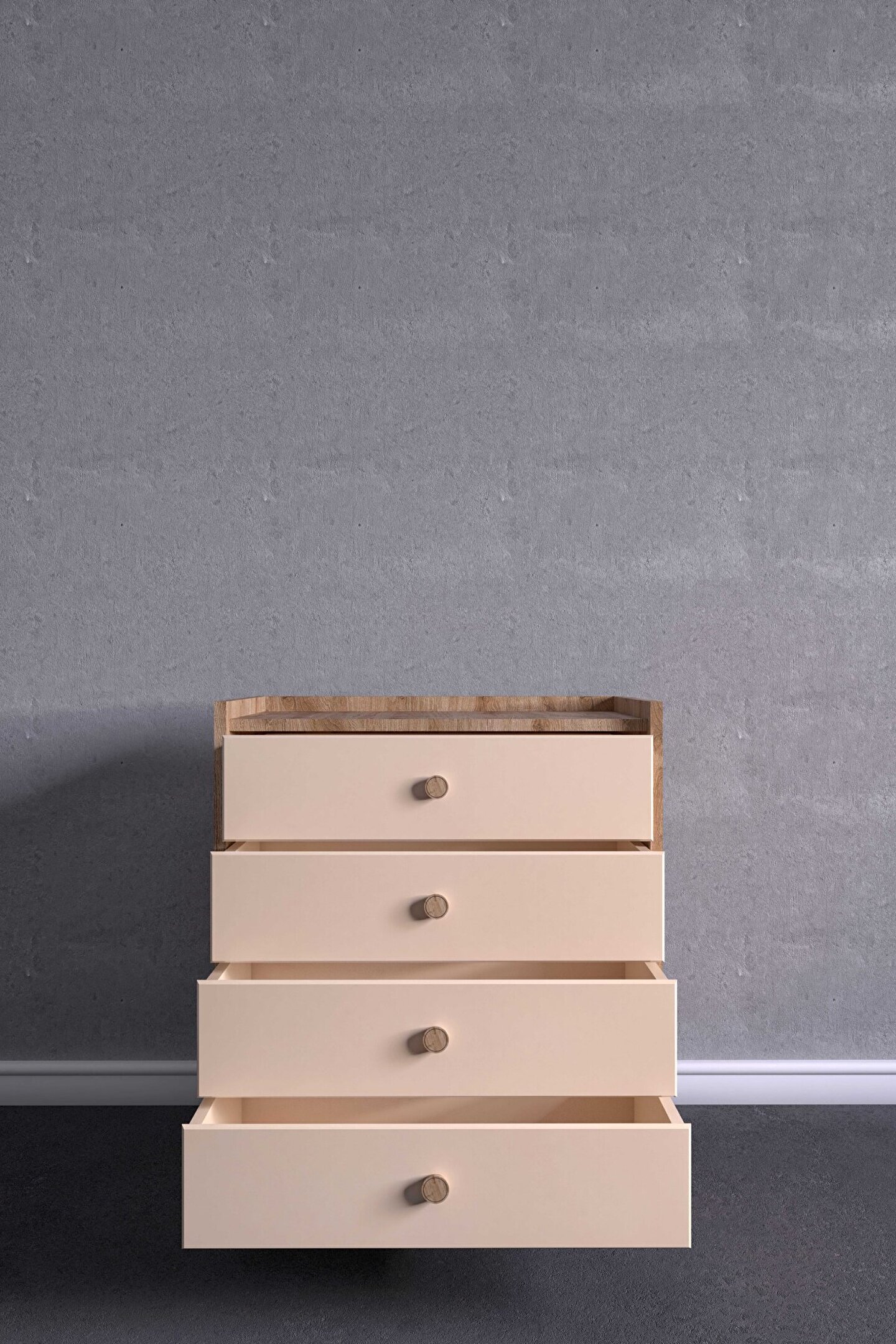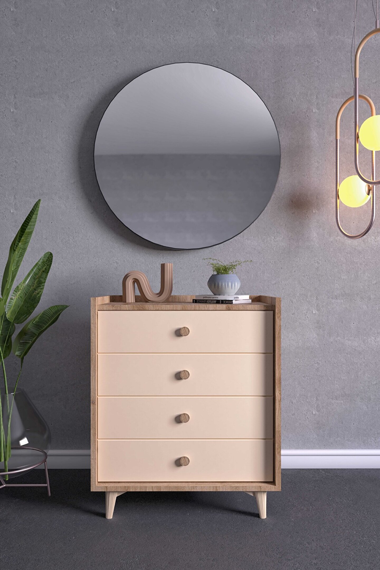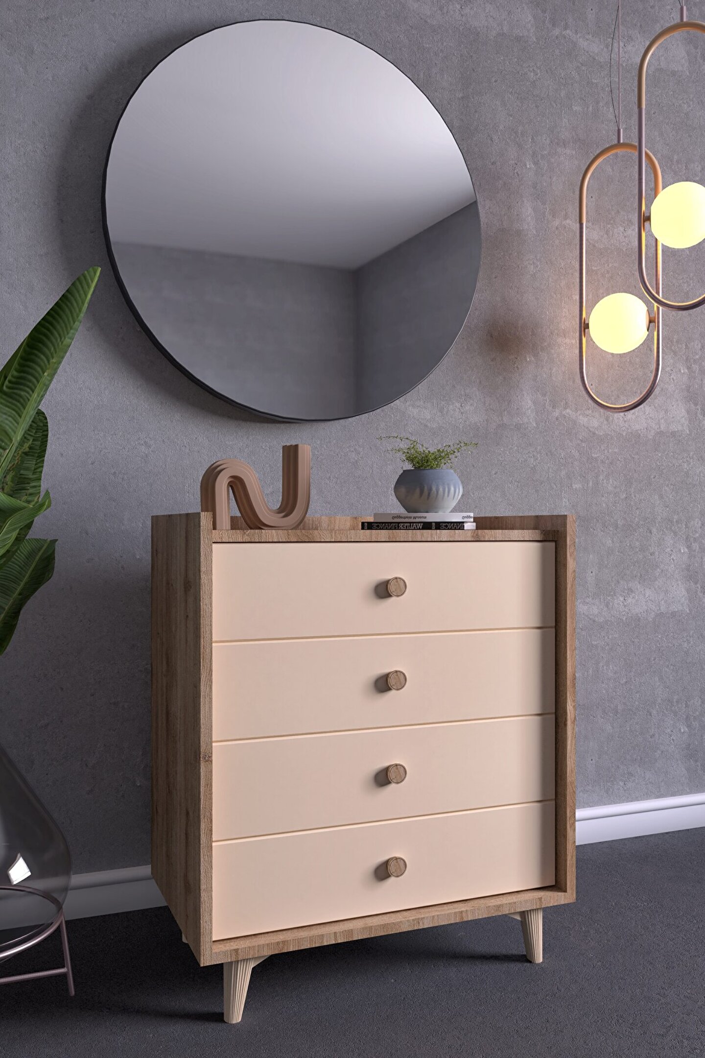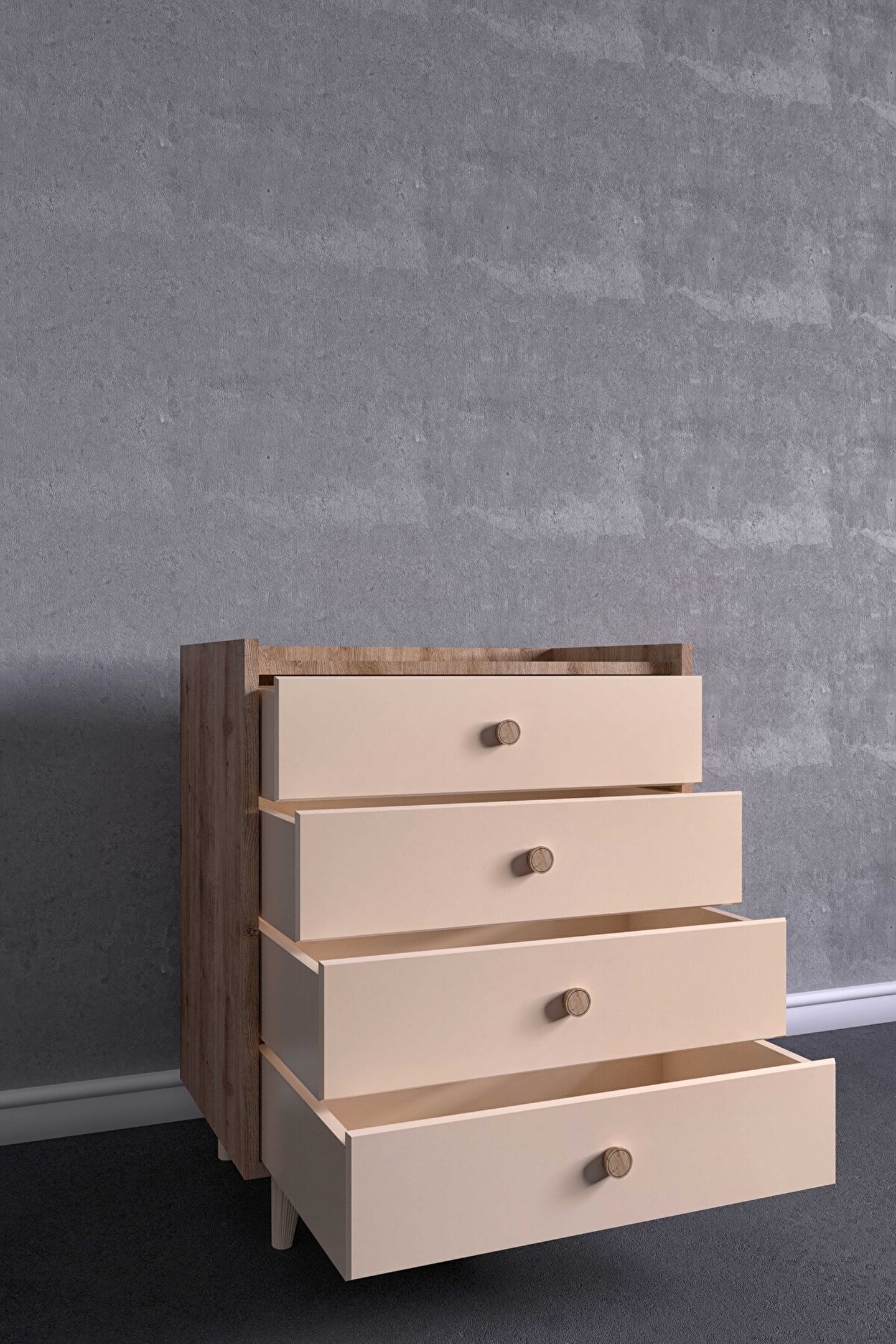 FUHO İda 4 Çekmeceli Şifonyer Meşe-Vizon Bej