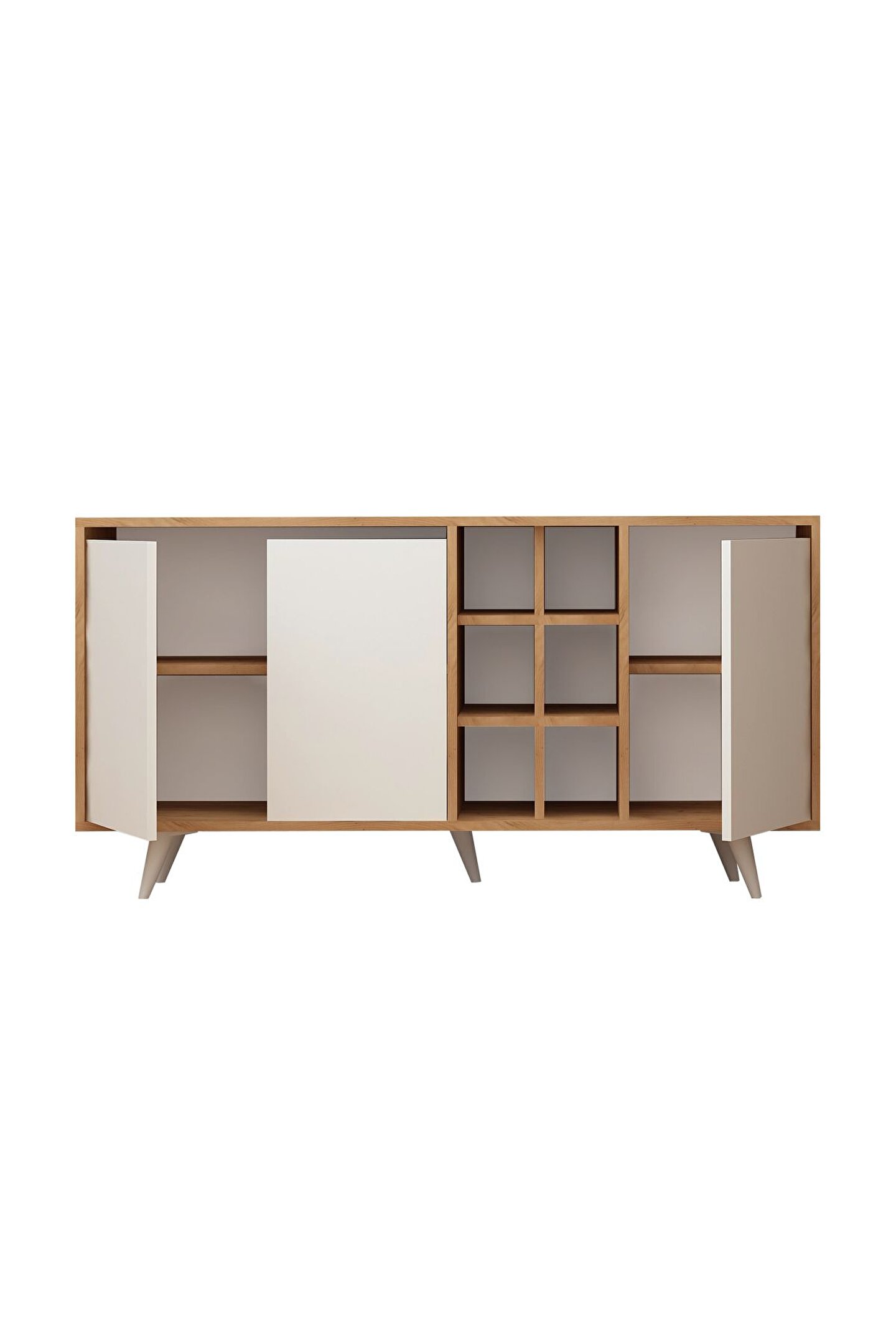• Ürün gövdesi 18 mm kalınlığında Safir Meşe renginde suntalam malzeme kullanılarak üretilmiştir. Yaşam alanlarına moderndesenleriyle şıklık kazandırırken, kapalı ve açık bölmeleri ile depolamaihtiyacınızı giderebilecek niteliktedir.