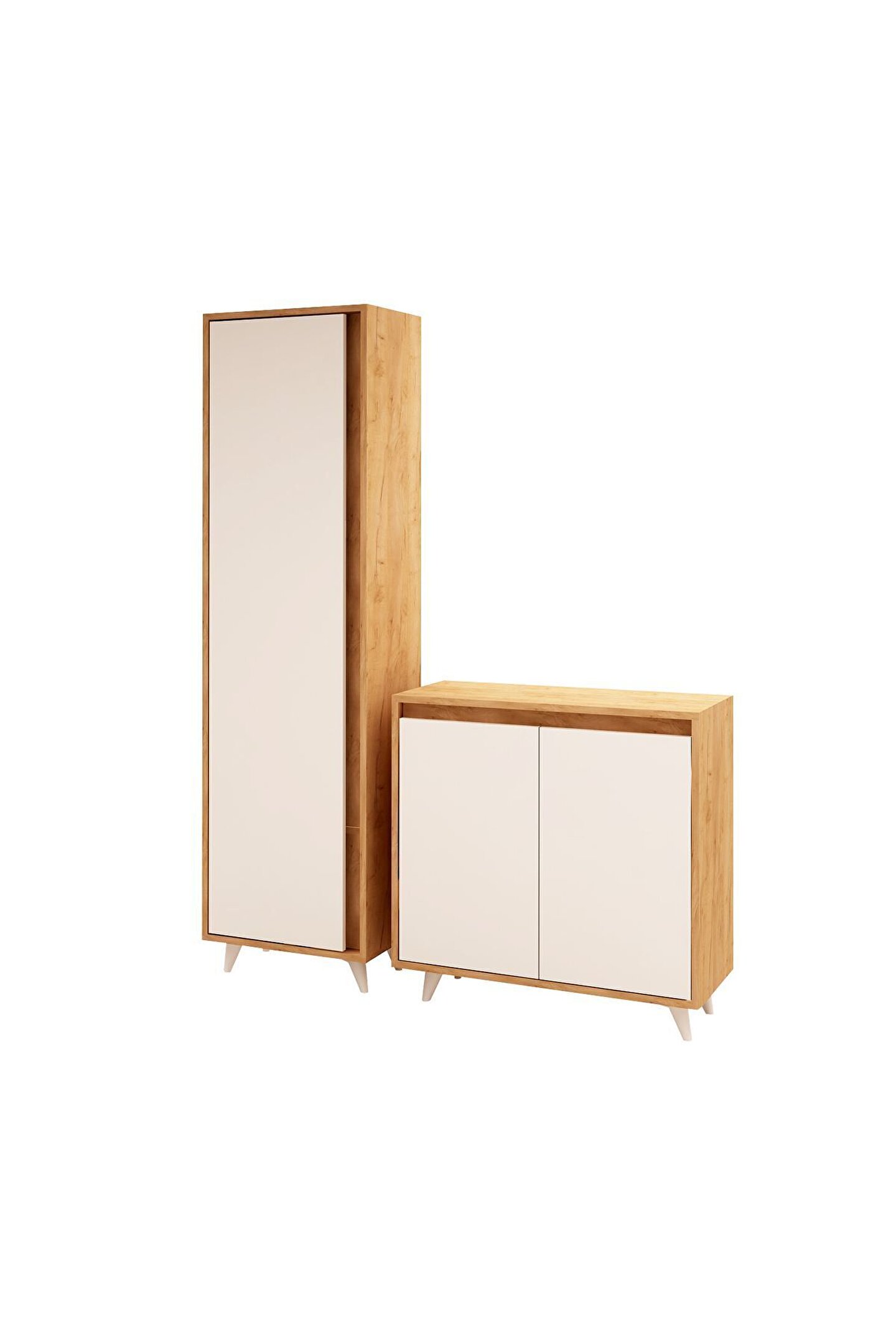 OMNİNDE VESTİYER Ürün Ölçüleri AYAKKABILIK MODÜLÜ G80 cm D35 cm Y100 cm ASKI MODÜLÜ G50 cm D35 cm Y192 cm Malzemeler GÖVDE: GOLD OAK(ALTIN MEŞE) SUNTALAM KAPAK: BEYAZ SUNTALAM Renk ALTIN MEŞE-BEYAZ Ürün Özellikleri Kullanılan Tüm Malzemeler TSE onaylı, E1 Kalitesinde olup kanserojen madde içermez ve Anti Bakteriyeldir. ; Montajı kolaylaştıracak biçimde kurulum talimatı yer almaktadır. ; Ürün yüzeyinde bulunan ahşap doku, doğal ağacı aratmayacak görünümdedir. ; Antre ve hollerde derleyici bir öge olarak kullanılmaya uygundur.;