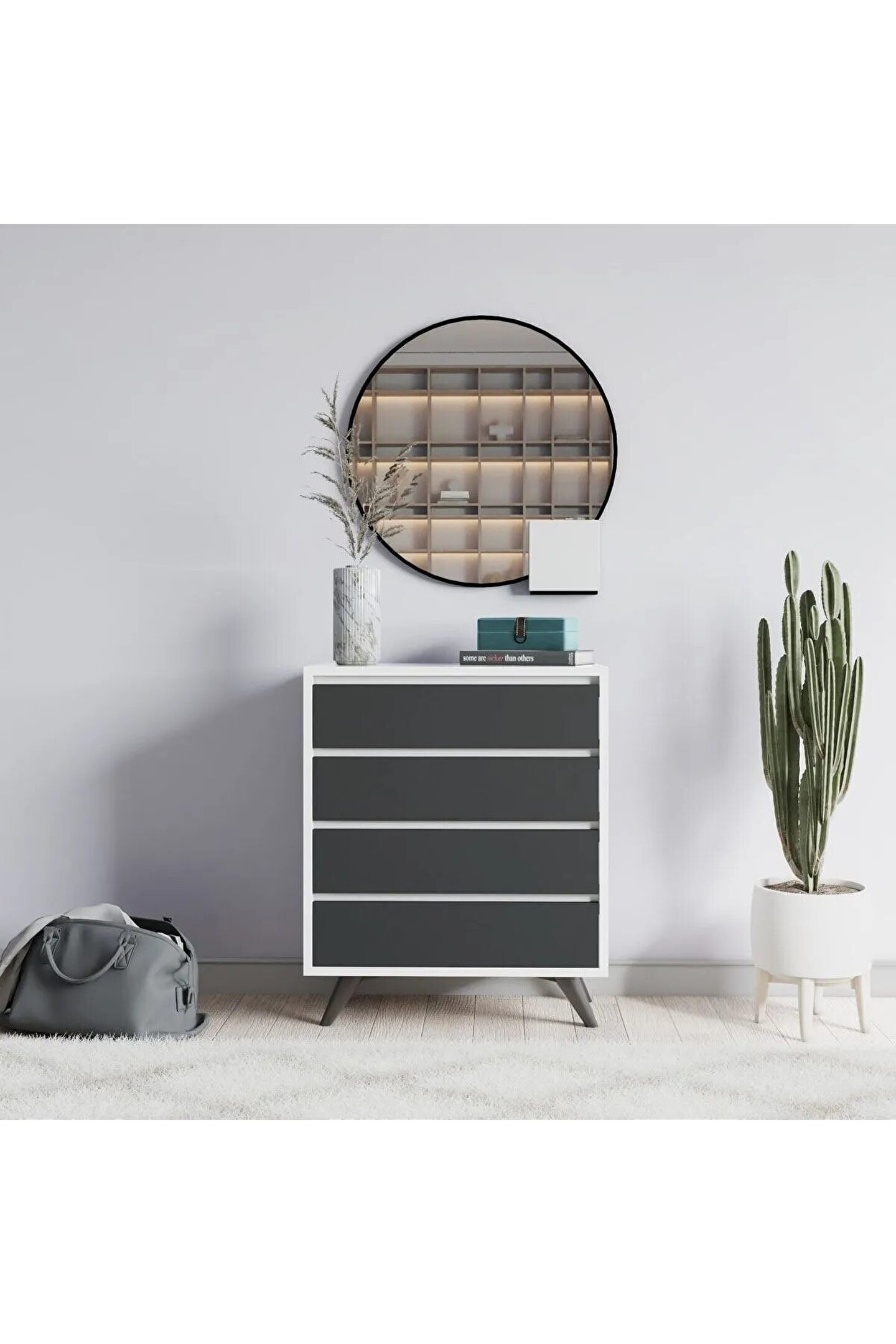 FUHO Suvera 4 Çekmeceli Şifonyer Beyaz-antrasit