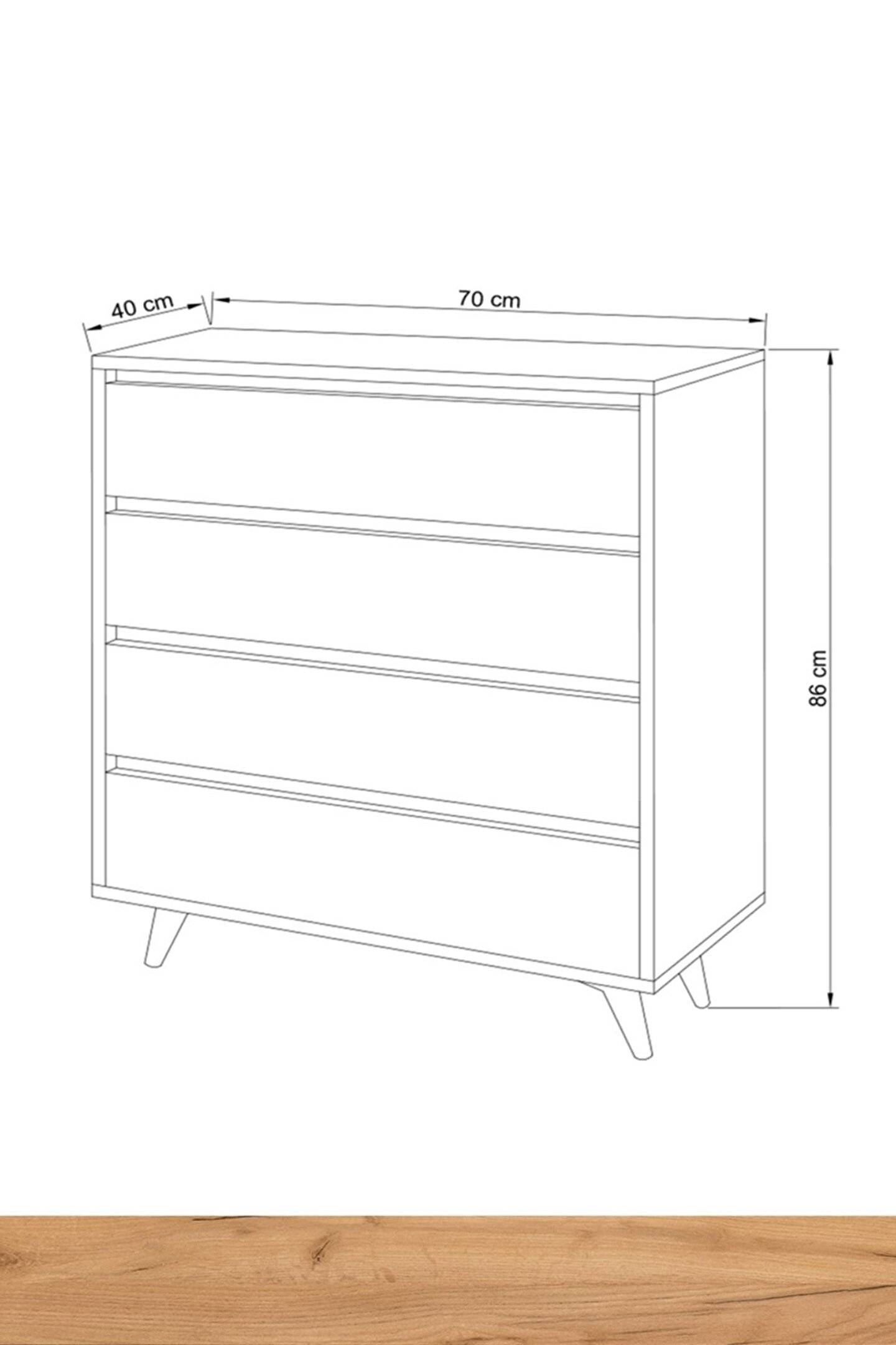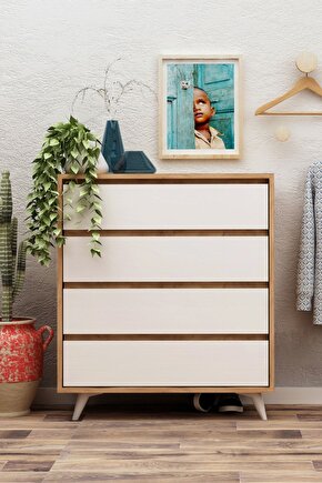 - Dört geniş çekmece kapasitesiyle, giysilerinizi ve kişisel eşyalarınızı düzenli bir şekilde saklamanızı sağlar; - Suntalam malzemesi sayesinde dayanıklı ve uzun ömürlü kullanım sunar; - Meşe rengi ve tasarımı, evinizin dekorasyonuna sıcak ve doğal bir dokunuş katar;