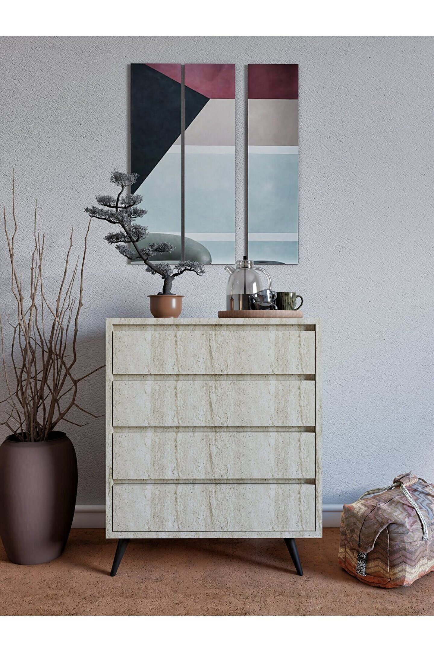 Suvera 4 çekmeceli traverten şifonyer ürün ölçüleri g:70cm d:40 cm y:86 cm g: Genişlik / d: Derinlik / y: Yükseklik ; malzemeler gövde: Traverten suntalam kapak: Traverten suntalam ; kullanılan tüm malzemeler tse onaylı, e1 kalitesinde olup kanserojen madde içermez.; ; ürün gövdesi 18 mm kalınlığında traverten renginde suntalam malzeme kullanılarak üretilmiştir.; yaşam alanlarında kolay kullanımlı , toparlayıcı ve dekorasyonu destekleyen şık bir üründür.; ; kurulum müşteriye aittir.; paketlerde gerekli kurulum şeması, tüm vida ve aksesuarların montaj seması ile uyumlu malzeme torbası ve kullanma kılavuzu çıkmaktadır.; hızlı ve hatasız kurulum için montaj şeması bulunmaktadır.; montaj için gerekli aletler *şarjlı tornavida *çekiç değişim ; ürün resimlerindeki aksesuarlar teşhir amaçlı olup, dahil değildir.; ;