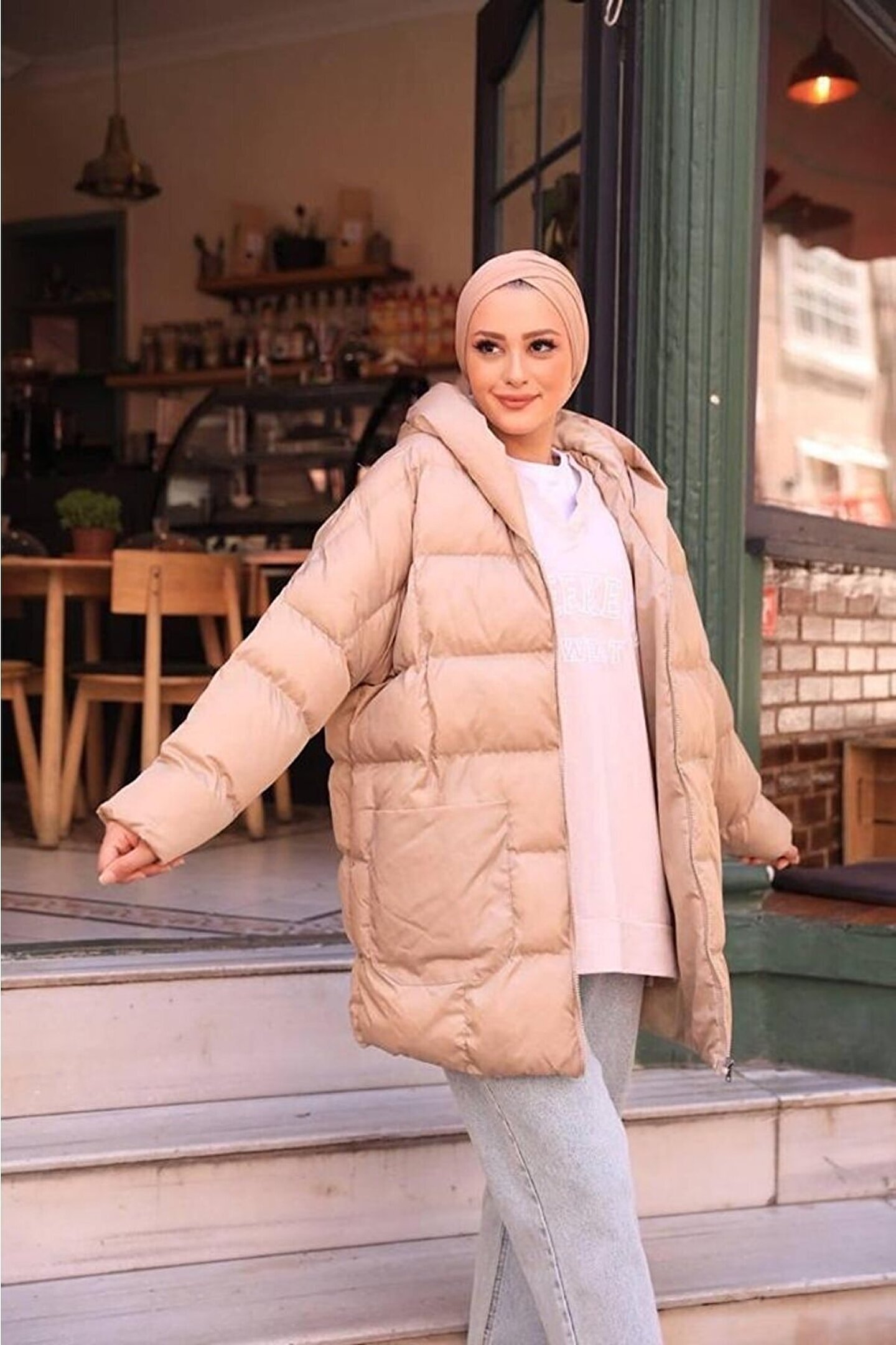 Bomber modeliyle modern ve şık bir görünüm sunan bu tesettür mont, günlük kullanım için idealdir.; Dokuma kumaşı sayesinde dayanıklı ve kaliteli bir yapıya sahiptir.; Düz deseniyle sade ve zamansız bir stil oluşturan mont, her türlü kombinle uyum sağlar.; Uzun kollu tasarımı ile mevsim geçişlerinde sizi soğuktan korurken şıklığınızdan ödün vermezsiniz.; Yan cepli yapısıyla pratiklik kazandırılan montta eşyalarınızı güvenle taşıyabilirsiniz.; Fermuarlı kapama şekli kolay kullanım sağlar ve montunuzu istediğiniz zaman giyip çıkarabilirsiniz.; Dolum dolgu tekniği ile hafifliği koruyarak sıcak tutar; kuş tüyü karışımlı dolgu materyali ise yumuşaklık ve konfor sunar.; Basic silueti sayesinde farklı vücut tiplerine uyum sağlayarak rahat bir kullanım imkanı verir.; Regular kalıp ile vücudu saran ama sıkmayan bir yapıda tasarlanmıştır.; Trend stil anlayışını yansıtan bu montla güncel moda akımlarına ayak uydurursunuz.; %100 polyester materyal bileşeni sayesinde uzun ömürlü kullanım vaat ederken aynı zamanda kolay bakım avantajını da beraberinde getirir.; Krem rengi ile zarif bir görünüm kazandırırken, standart boyu çoğu bedene uygunluk gösterir.; Kapüşonlu yaka tipi soğuk havalarda ekstra koruma sağlar; çift cepli yapısıyla fonksiyonellik artar.; Astarlı iç yapıyla konforunuz düşünülerek üretilmiştir; böylece montunuzu daha da sıcak tutar.; Type 2 yıkama talimatlarına uyularak temizlenmesi kolaydır; böylece uzun süreli kullanımın keyfini çıkarabilirsiniz.;