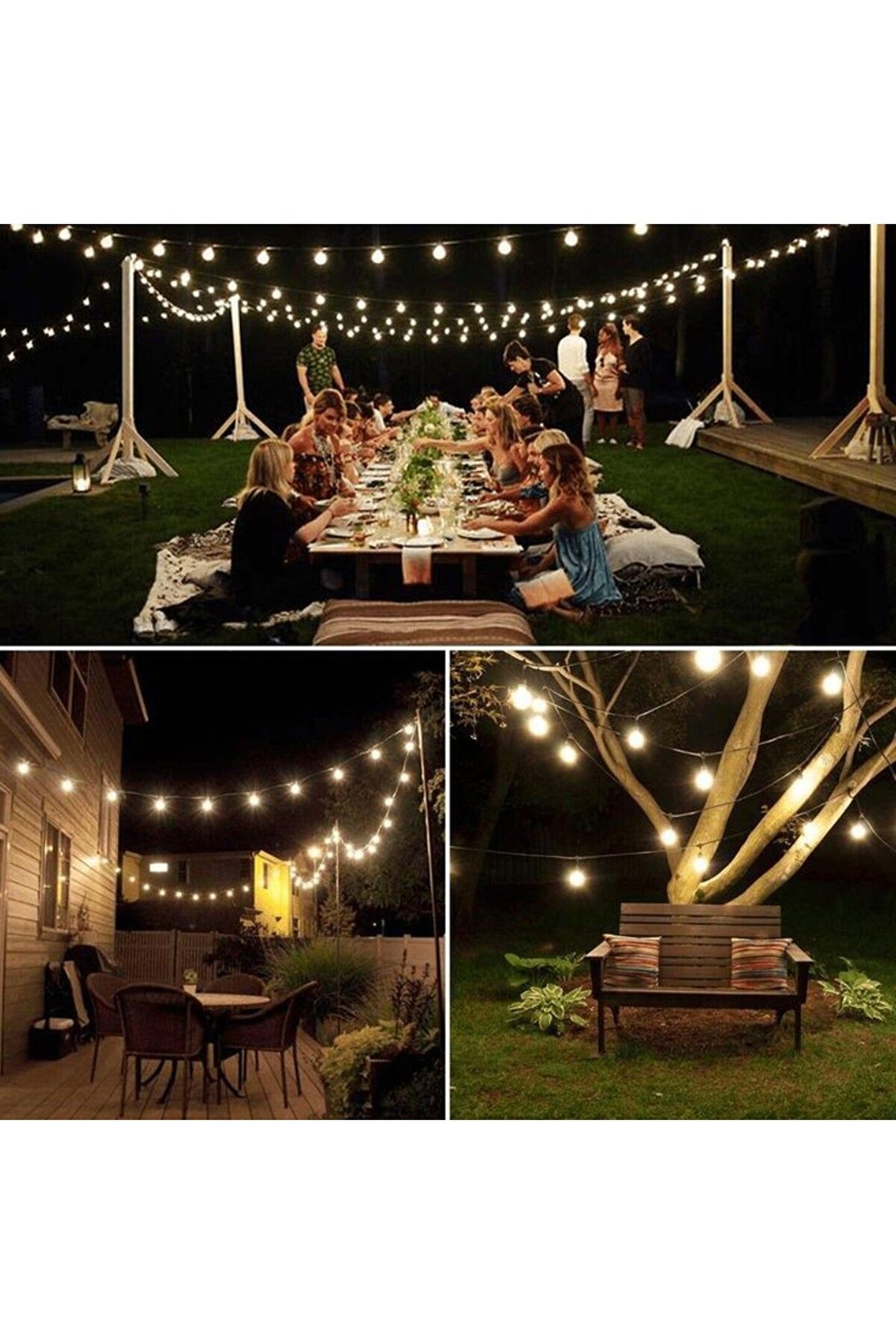 fullreyon 10 Metre, 10 Adet 10 Watt Beyaz Işık Ampullü Düğün Kına Eğlence İşletme, Bahçe Aydınlatma Organizeri