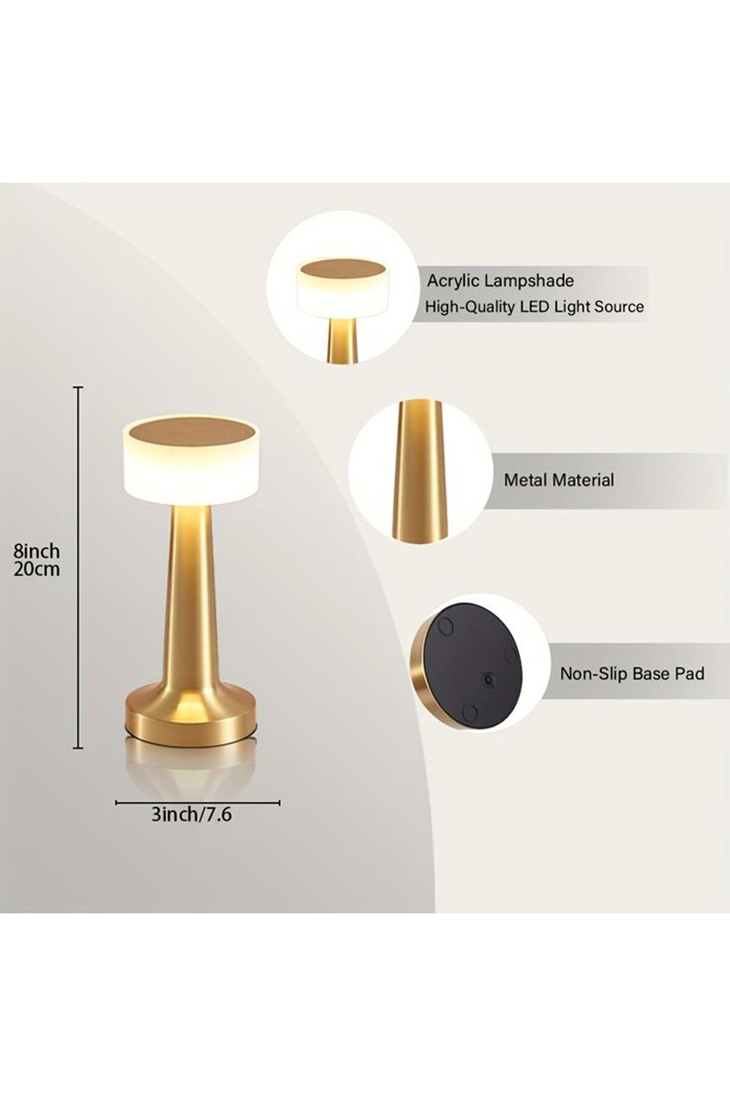 3 Farklı Işık Modlu Metal Şarjlı, Dokunmatik Masa ve Gece Lambası, Cafe, Bar, Restorant Masa Lambası