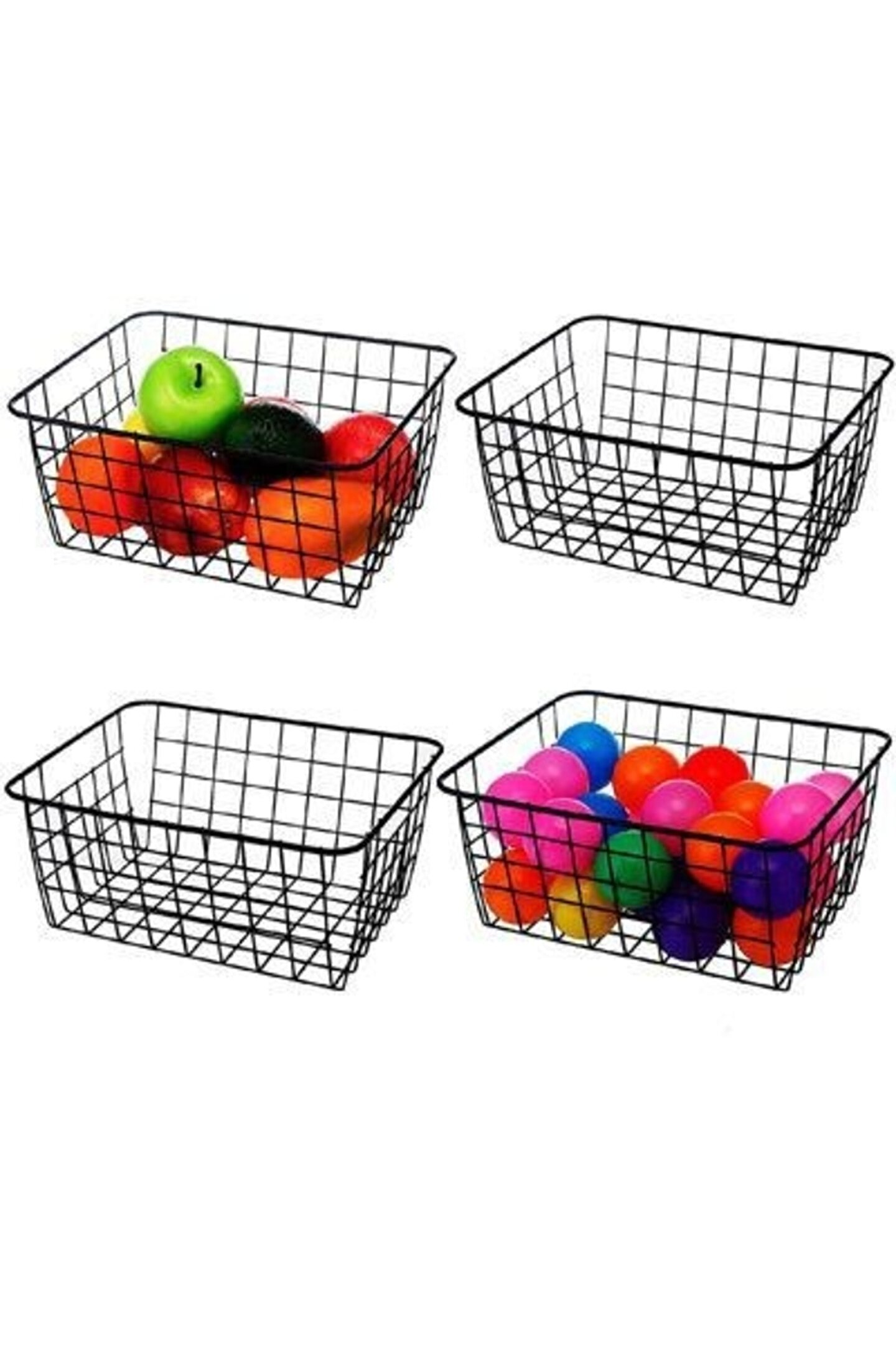 PAKET İÇERİĞİ: 4 ADET Tel Sepet Organizer; Metal Ferforja Sepet, Masa Üstü Organizer, Organizer Sepet, Düzenleyici Organizer, Dolap İçi Organizer, Tel Metal sepetimiz ile sık kullanılan eşyaları sepette düzenlip kolayca erişebilir ve dağınıklığı toparlayabilirsiniz. Mutfak dolapları, kiler, banyo, tezgâh üstü ve atölyelerinizde ürünümüzü kullanabilirsiniz. Ürünümüz metal telden imal edildiği için sepettinizdeki her şeyi görmenizi sağlar. Çocuklarınızın oyuncaklarını, evcil hayvan malzemelerini, kiler malzemelerini, misafir banyo malzemelerini, temizlik malzemelerini, ve çok daha fazlasını düzenleyebilirsiniz.; Ürün Ölçüleri: Genişlik : 28,5 Cm x 22 Cm Yükseklik : 12 cm;