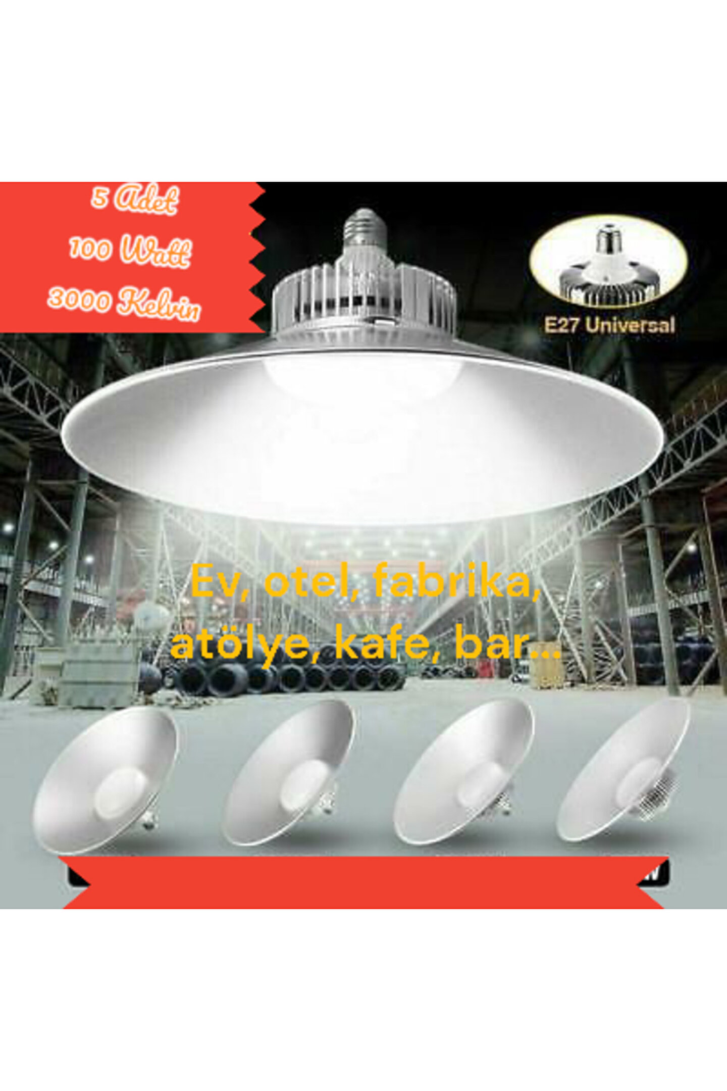 fullreyon 5 Adet 45 Cm Çapında 100 Watt Günışığı, Avize Görünümlü Led Ampul, Fabrika, Atölye, Kafe Bar Armatür