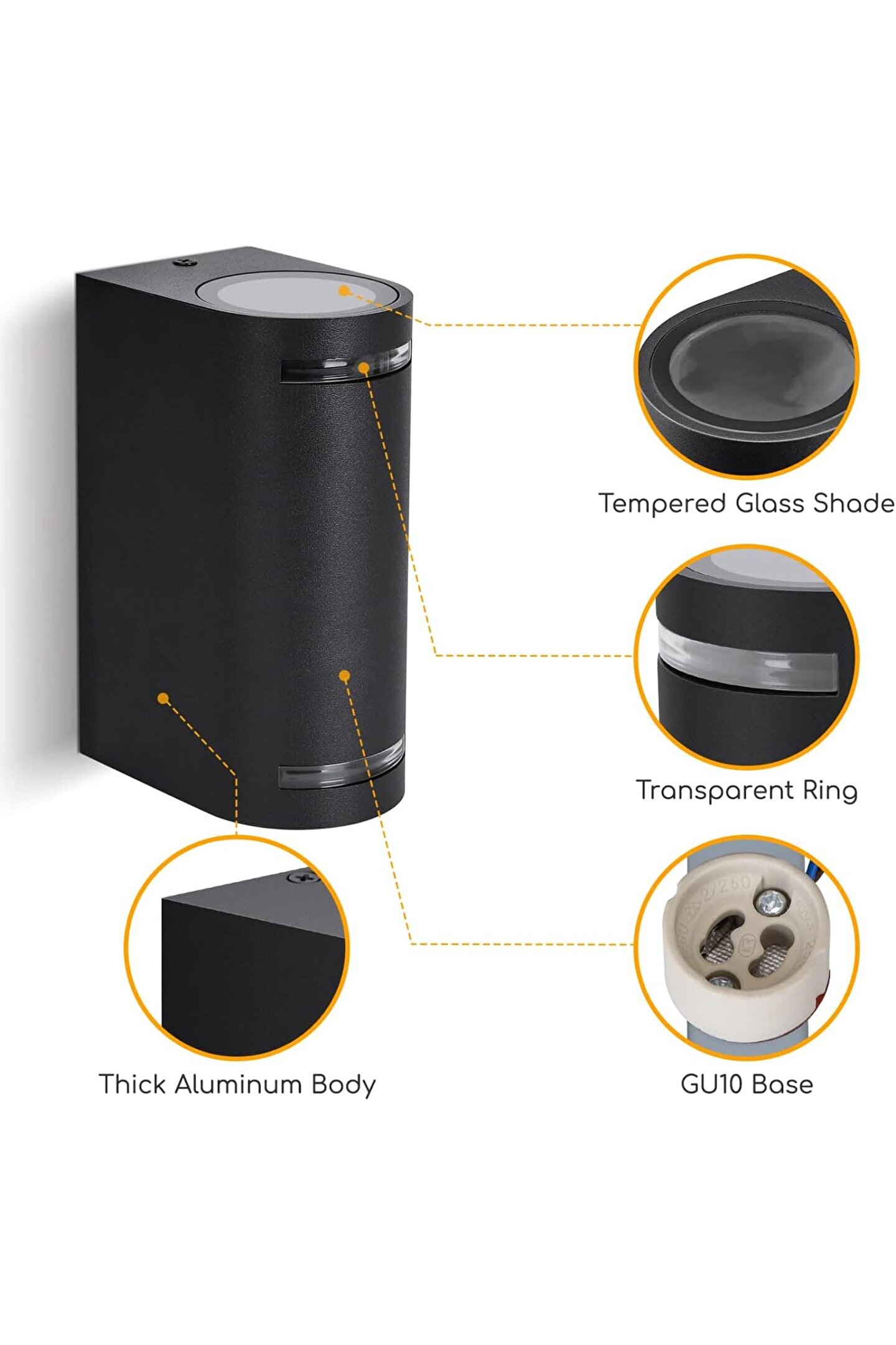 Ürünümüz elektrik kaynağına bağlı olarak çalışır. Alüminyum metaldir. Gu10 Duyludur. İki adet 7 Watt Gu10 Duy 6500 Kelvin, BEYAZ IŞIK led ampul fiyata dahildir. IP54 Koruma sınıfındandır. Yağmur, kar ve güneş gibi mevsimsel şartlardan etkilenmez. İç ve dış mekan, bahçe, balkon, salon, yatakbaşı, kapı girişi, villa dış cephe gibi tüm yaşam alanlarında kullanıma uygundur. Duy seramiktir. Ürün Ölçüleri: 15 Cm yükseklik, 7 Cm genişlik, 9 Cm Derinlik. Paket İçeriği: Bir adet çift yönlü metal kasa aplik ve iki adet gu10 Duy led ampul
