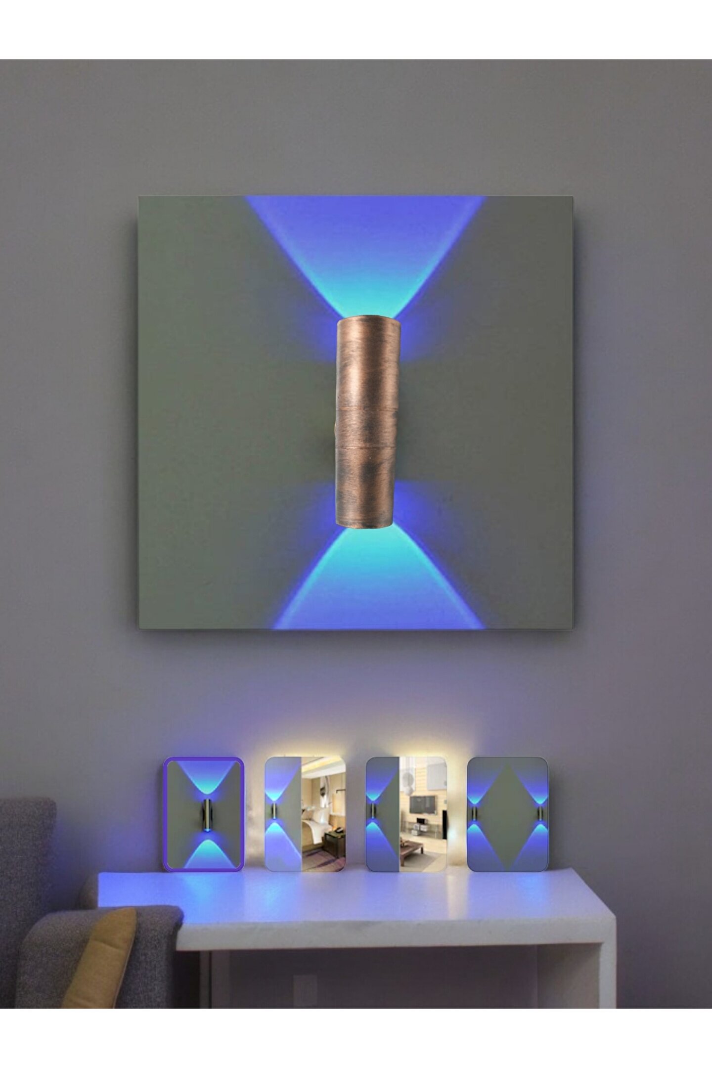 fullreyon Bakır Eskitme 14 Watt MAVİ IŞIK Gu10 Duy Led Aplik, Sarı Yaldız Armatür, Bahçe, Balkon Teras Apliği