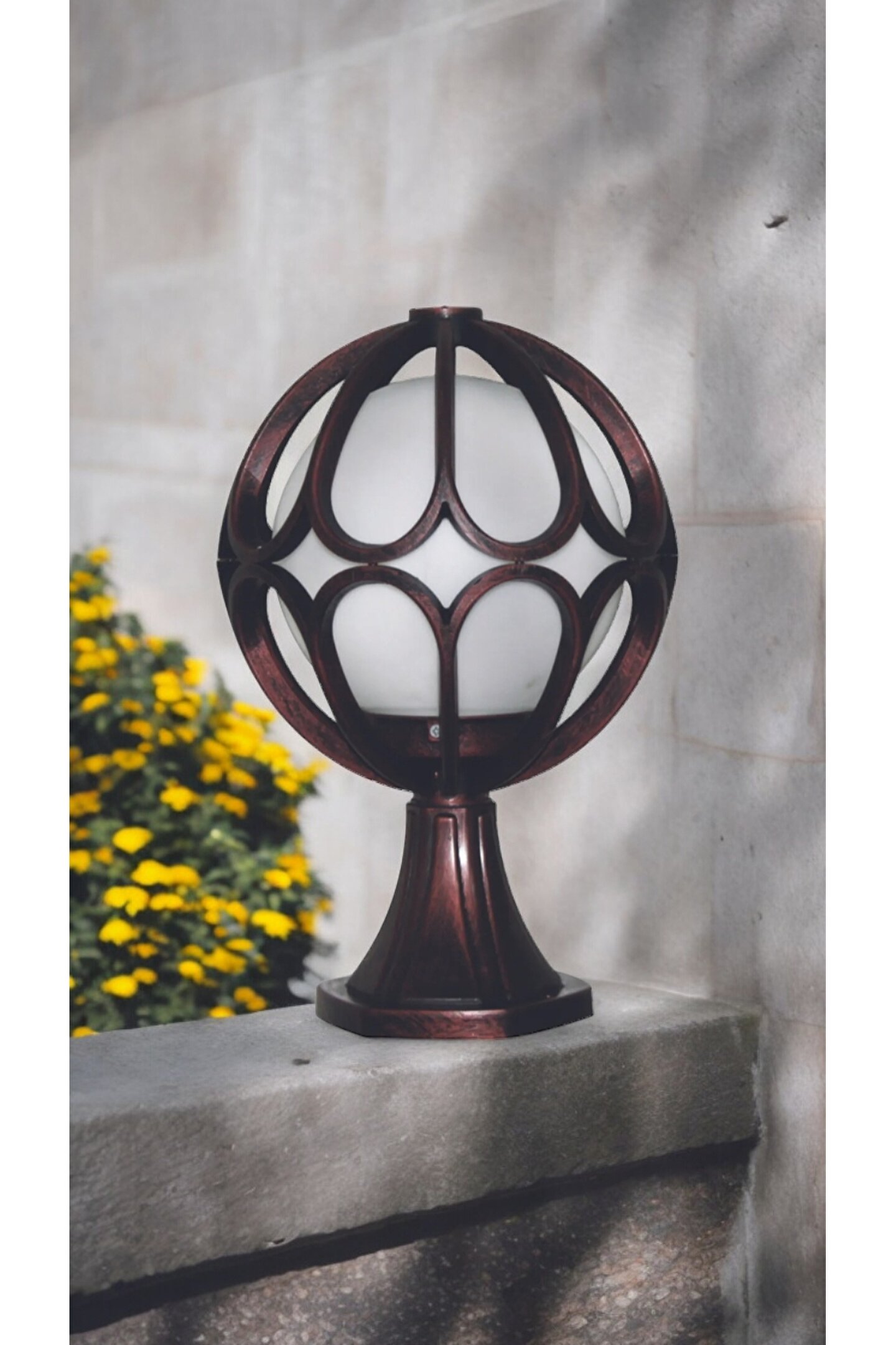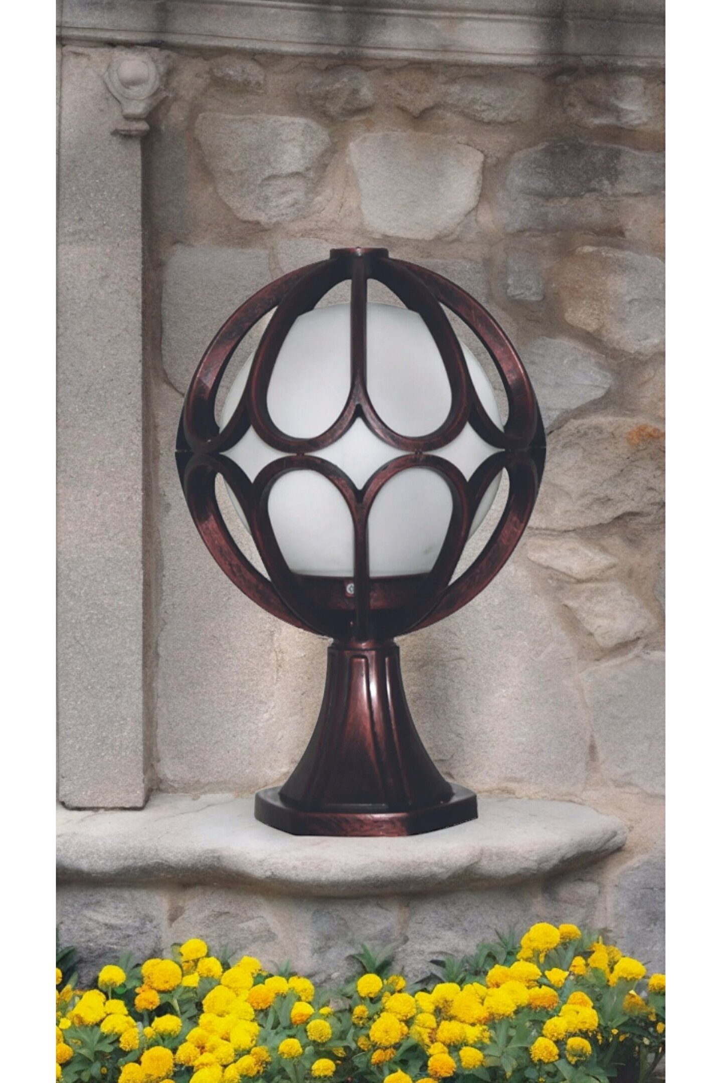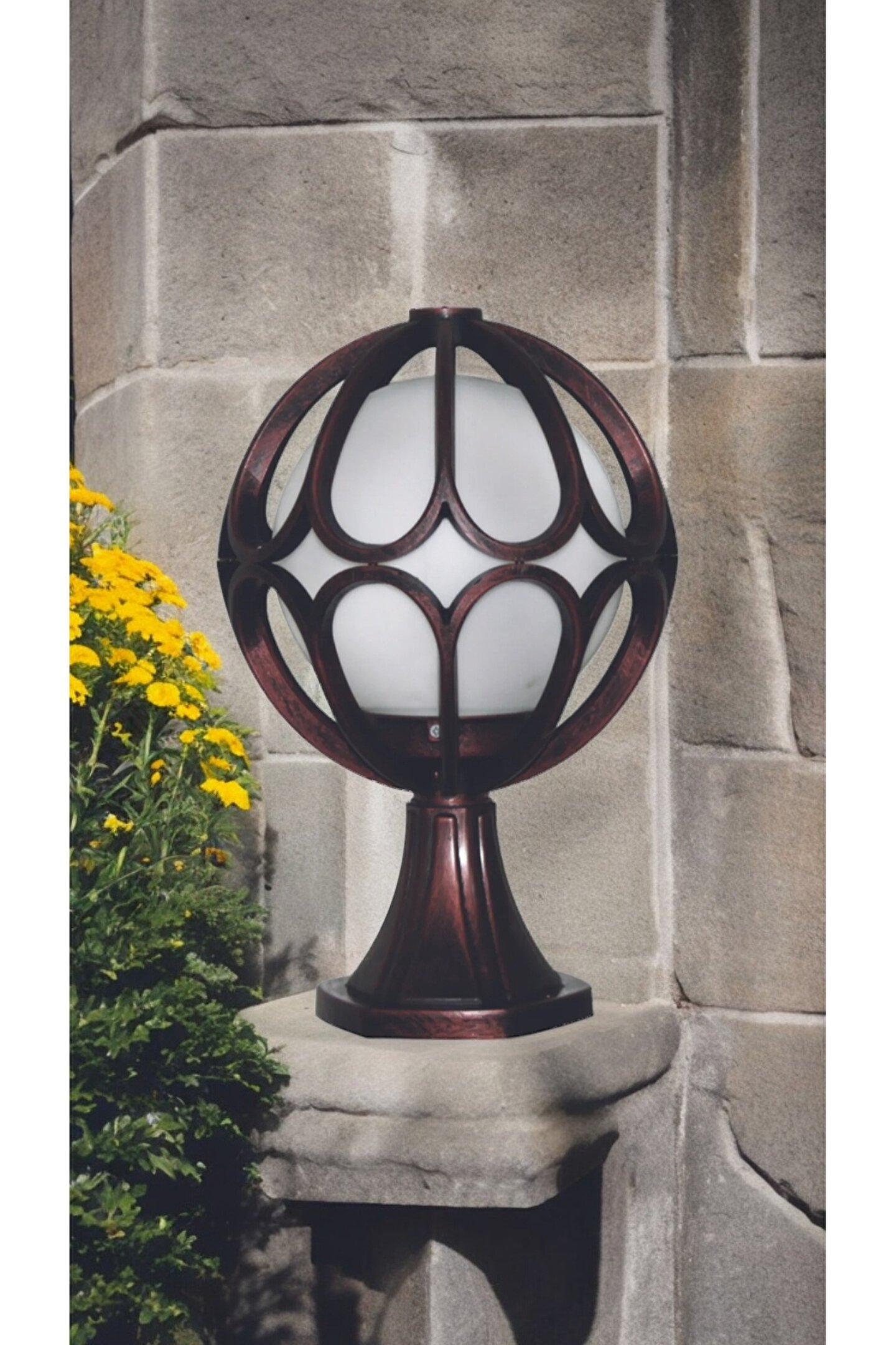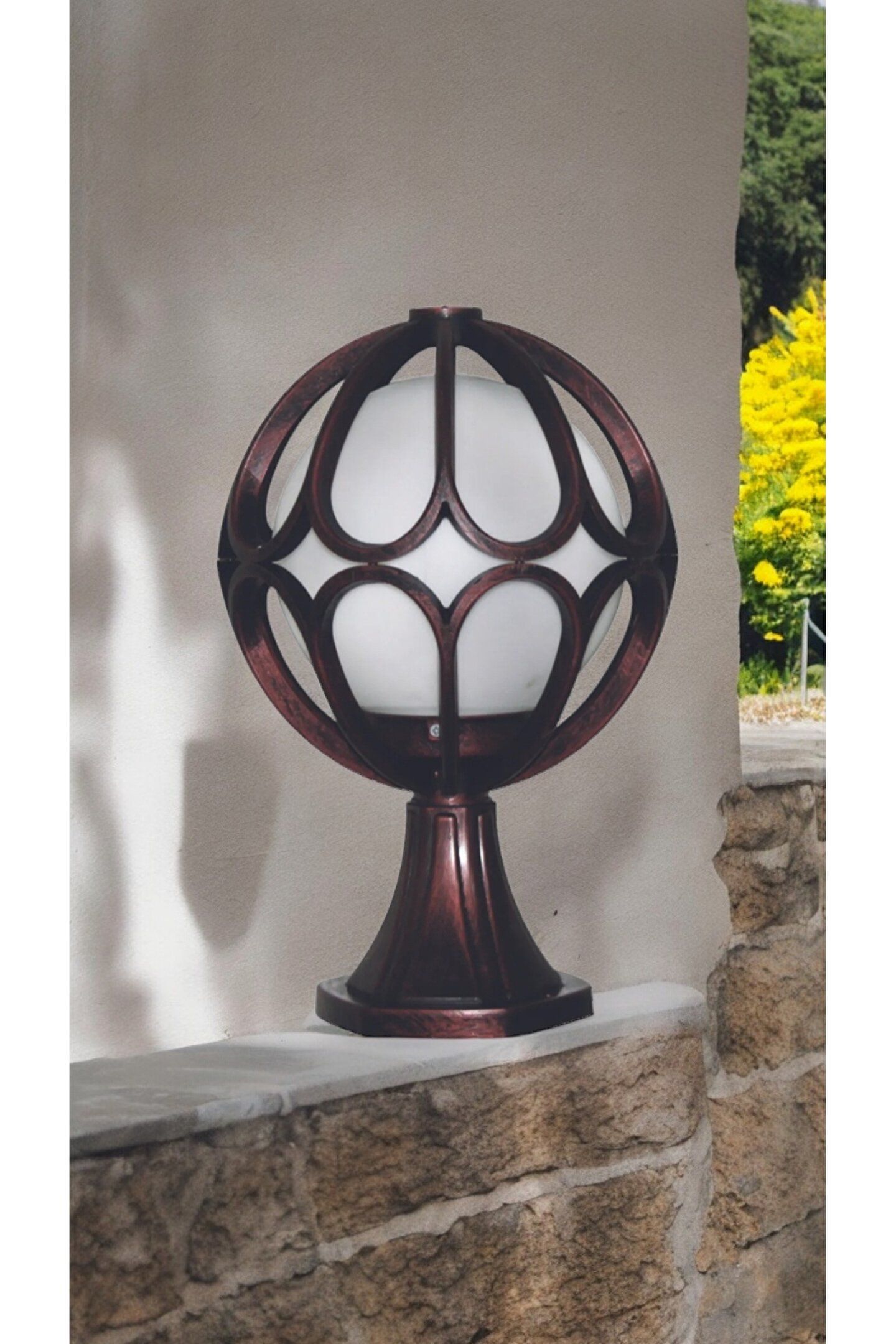 Beyaz Işık 10 W. Led Ampullü Bakır Eskitme Bahçe Duvar Aydınlatma Armatürü Set Üstü Plastik Aplik