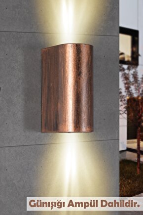 ÜRÜNÜMÜZ ELEKTRİK İLE ÇALIŞMAKTADIR. ; PİLLİ, ŞARZLI YA DA GÜNEŞ ENERJİLİ DEĞİLDİR! İÇ VE DIŞ MEKAN KULLANIMINA UYGUNDUR. ; YAĞMUR, KAR, GÜNEŞ GİBİ MEVSİMSEL ŞARTLARDAN ETKİLENMEZ! FATURA TARİHİNDEN İTİBAREN APLİKLERİMİZ 1 YIL İMALATÇI FİRMA GARANTİLİDİR. ; Ürünümüz 1. ; Kalite Sert Plastikten Üretilmiştir. ; IP65 Su Geçirmez Özelliktedir. ; Çift taraflı aydınlatma özelliği ile iç ve dış mekanlarda dekoratif bir görüntü vermektedir. ; Bakır eskitme yöntemi ile renklendirilmiş ürünümüz mevsimsel şartlardan etkilenmemektedir. ; 220 W. ; Elektrik ile çallışmaktadır. ; Ürün Ölçüleri: 7 x 9 x 15 Cm Paket İçeriği: 1 Adet Çift Yönlü Eskitme Aplik Ve 2 Adet Gün Işığı Ampul;