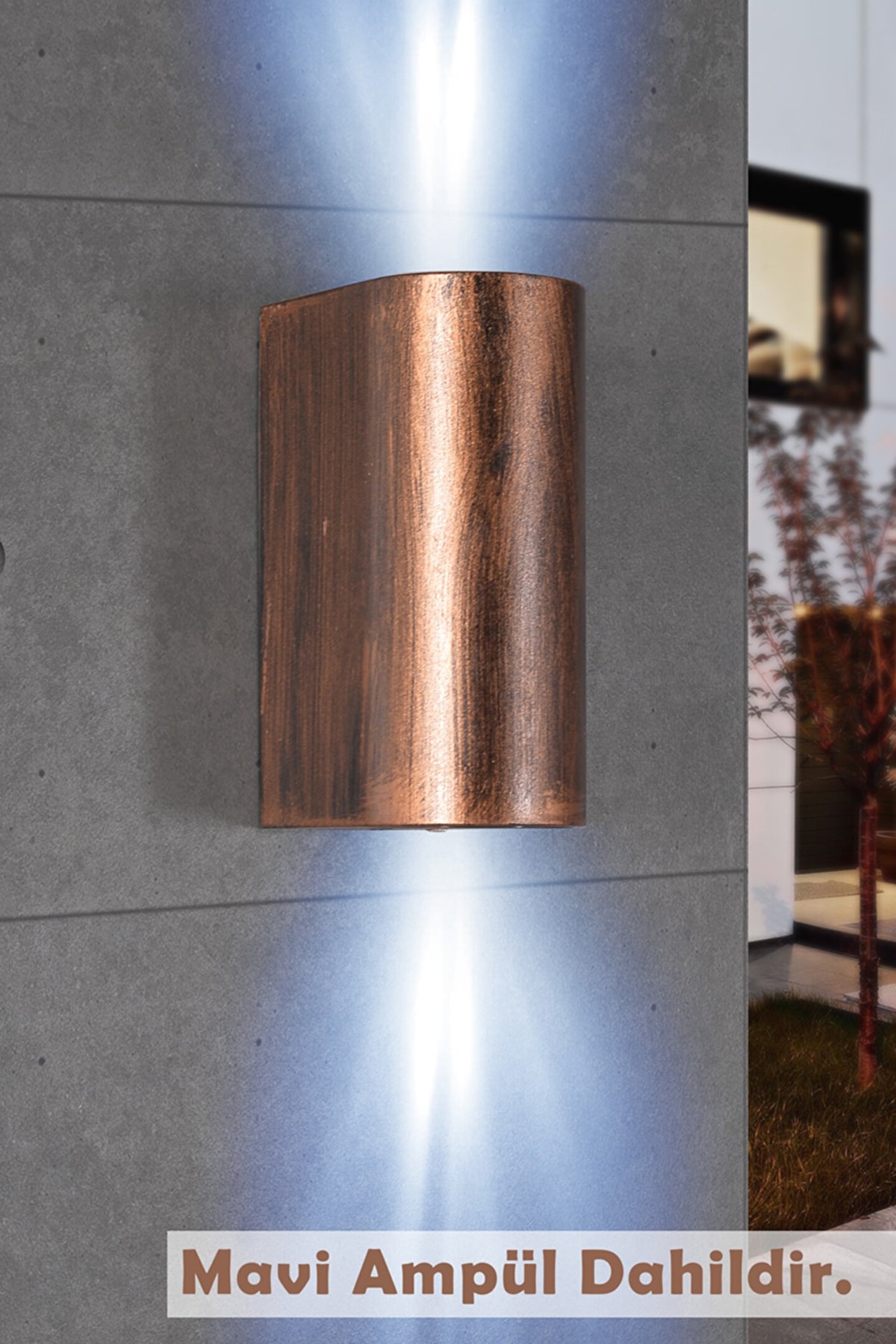 Ürünümüz 1. ; Kalite Sert Plastikten Üretilmiştir. ; IP65 Su Geçirmez Özelliktedir. ; Çift taraflı aydınlatma özelliği ile iç ve dış mekanlarda dekoratif bir görüntü vermektedir. ; Bakır eskitme yöntemi ile renklendirilmiş ürünümüz mevsimsel şartlardan etkilenmemektedir. ; 220 W. ; Elektrik ile çallışmaktadır. ; Ürün Ölçüleri: 7 x 9 x 15 Cm Paket İçeriği: 1 Adet Çift Yönlü Bakır Eskitme Aplik - 2 Adet Gu10 Mavi Işık 7 W. ; Led Ampul;