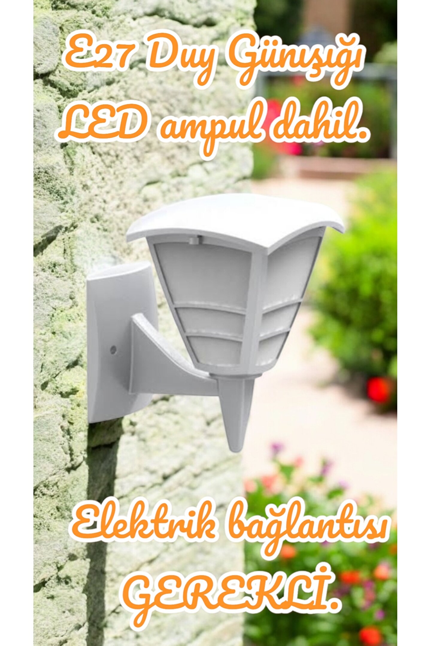 E27 Duylu, 10 Watt Günışığı Led Ampul Dahil, BEYAZ renk İç ve Dış Mekan Bahçe, Balkon, Teras Apliği