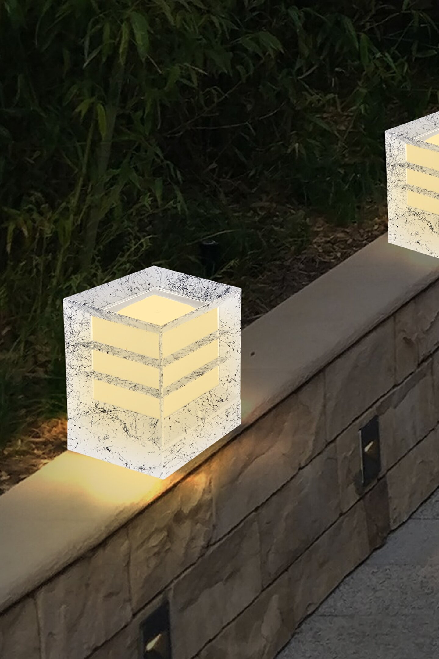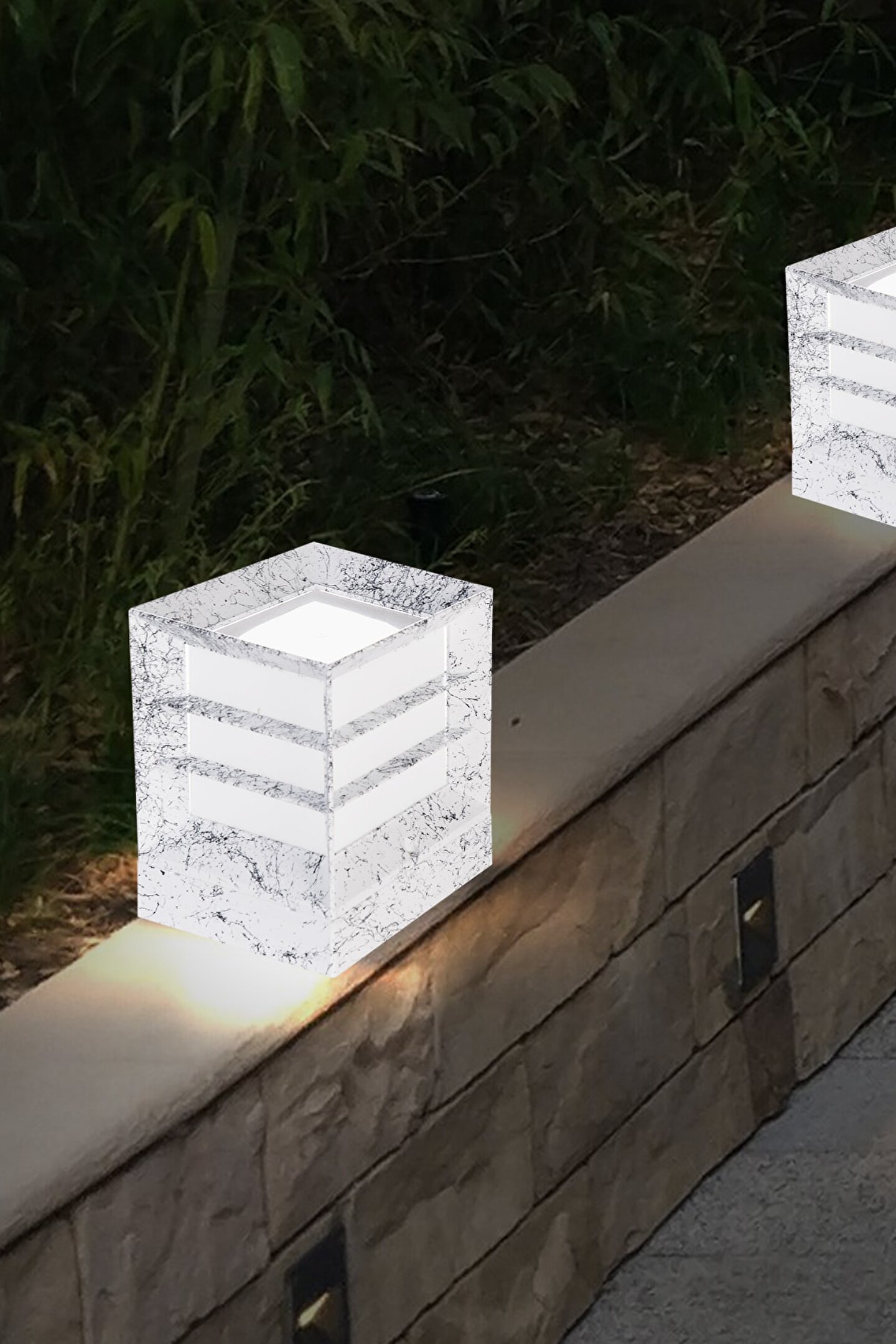 fullreyon Mermer Desen Plastik 1. Sınıf Kare Küp Bahçe Aydınlatma Armatürü