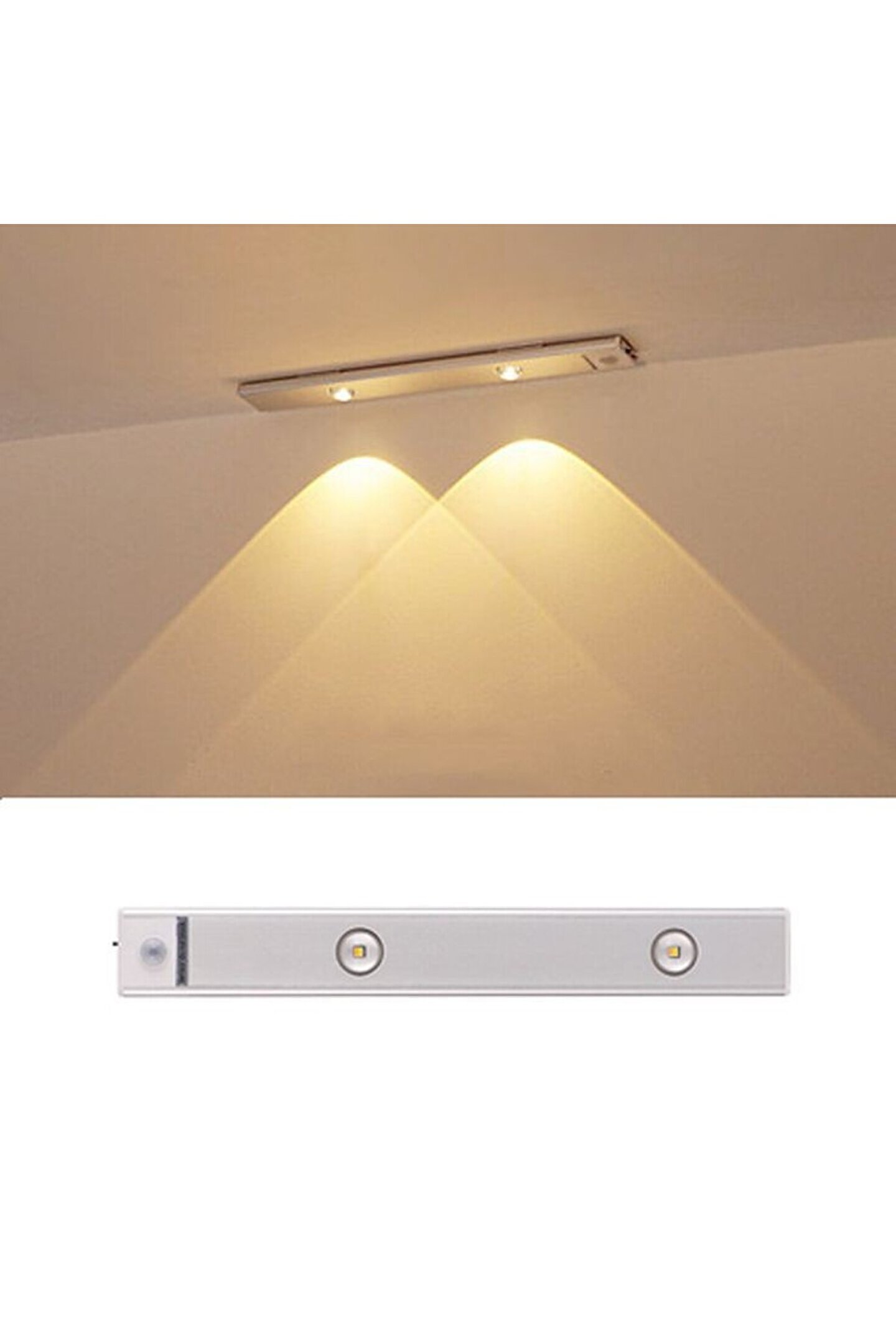 Ürünümüz 30 Cm, sensörlü, şarzlı, alüminyum kasa, 6 Watt, 3 Işık Renkli (3000 - 4000 - 6500 Kelvin - Günışığı, Beyaz, Soğuk Beyaz Işık) USB kablosu dahil, çift magnetli modern tarasım led apliktir. USB şarj girişi, On - Off düğmesi vardır. Aç - kapa düğmesine her basışta ışık rengi ve kelvin değerli değişmektedir. İki adet mıknatıslı magnet sayesinde mutfak tezgah altı, dolap içi, giyinme dolabı, kiler, koridor, yatak kenarı gibi çok çeşitli alanlarda kullanıma uygun ve oldukça kaliteli, şık bir üründür.