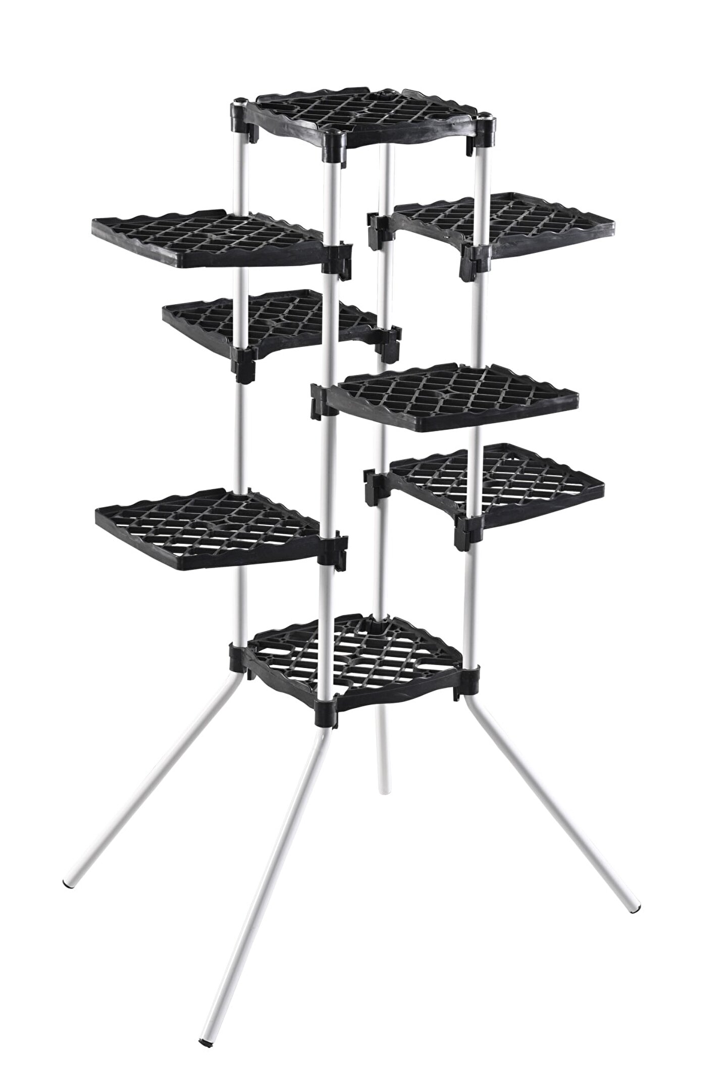 Modern tasarım, Kolay ve rahat kurulum Çiçeklerinizi bir arada daha düzenli ve daha güzel gösterir. Demonte olarak gönderilen ürünümüzün içerisinde kurulum esnasında gereken aparatlar eksiksiz olarak ürün kutusunun içinde mevcuttur. Ürün kurulumunu rahatça tamamlamanız için gerekli yönlendirmeleri içeren kılavuz kutu içeriğindedir. Kendi tasarımımız olan ürünümüz 20 cm çapa kadar saksılara sahip çiçeklerinizi salonunuzda, balkonunuzda, terasınızda vb. alanlarda oldukça şık bir şekilde barındıracaktır. Stantların her birinin 4 kg taşıma kapasitesi vardır. Ürün içeriği: 4 adet metal ayak, 2 adet ayakları birleştirici plastik stant, 6 adet yan plastik stant, 8 adet plastik tapa, 24 adet stant sabitleyici kilit. Kolay kurulum kılavuzu Ürünümüzün ayakları elektrostatik toz boyalı metal borudan, çiçek konulan stant kısımları ise sağlam plastikten üretilmiştir. Ürün Ölçüleri: Genişlik: 55cm x 55cm Yükseklik: 93,5cm 1 adet Raf öçüsü: 20 X 20 Cm; Yedek kilit olması için fazladan stant sabitleyici kilit gönderilmektedir. ; Ürünümüz metal - plastik kombindir. Ayaklar metal, raflar birinci kalite plastiktir. ; Ürün ağırlığı 2,5 kg'dır. ;