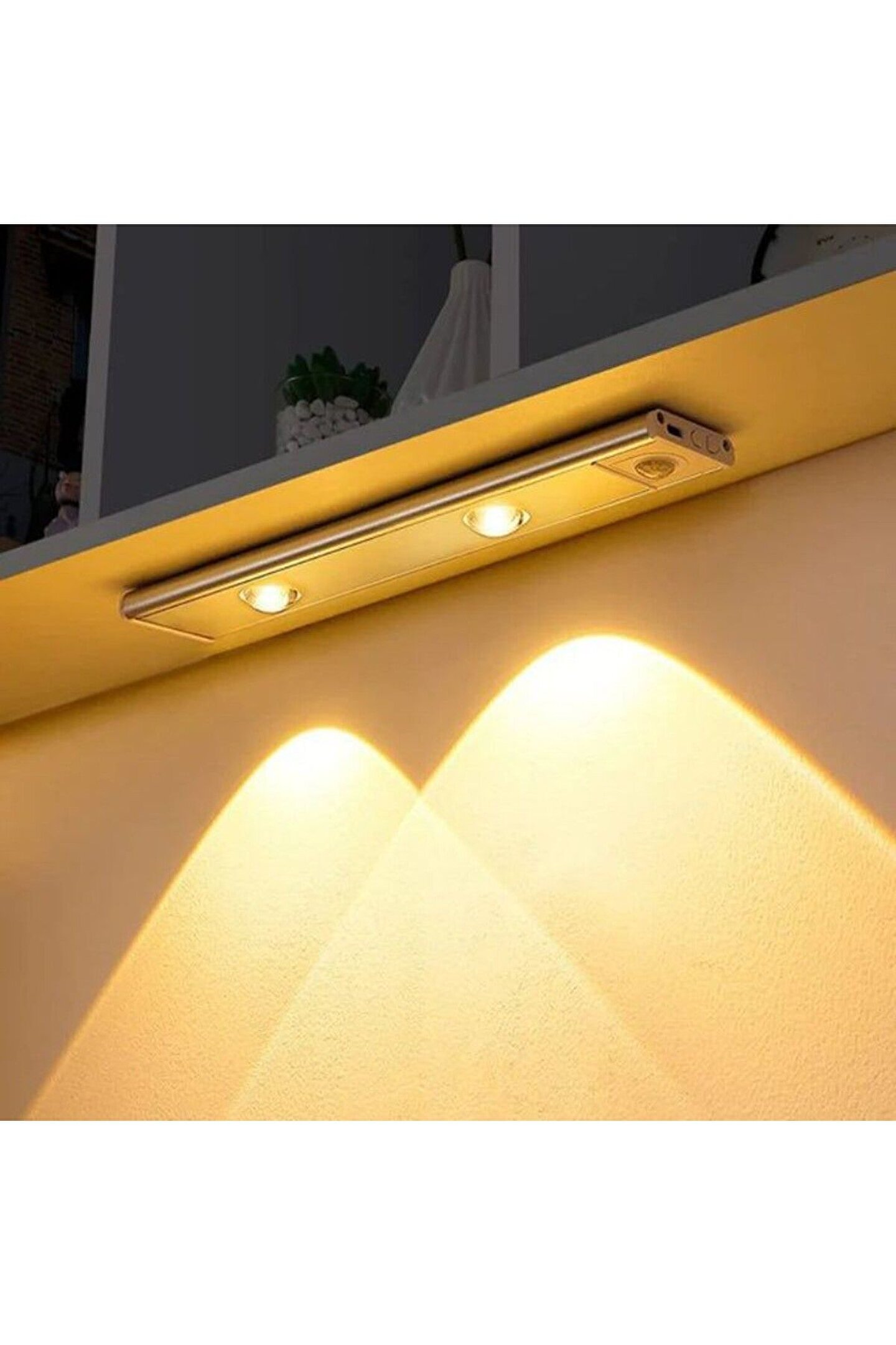 Ürünümüz 30 Cm, sensörlü, şarzlı, alüminyum kasa, 6 Watt, 3 Işık Renkli (3000 - 4000 - 6500 Kelvin - Günışığı, Beyaz, Soğuk Beyaz Işık) USB kablosu dahil, çift magnetli modern tarasım led apliktir. USB şarj girişi, On - Off düğmesi vardır. Aç - kapa düğmesine her basışta ışık rengi ve kelvin değerli değişmektedir. İki adet mıknatıslı magnet sayesinde mutfak tezgah altı, dolap içi, giyinme dolabı, kiler, koridor, yatak kenarı gibi çok çeşitli alanlarda kullanıma uygun ve oldukça kaliteli, şık bir üründür.