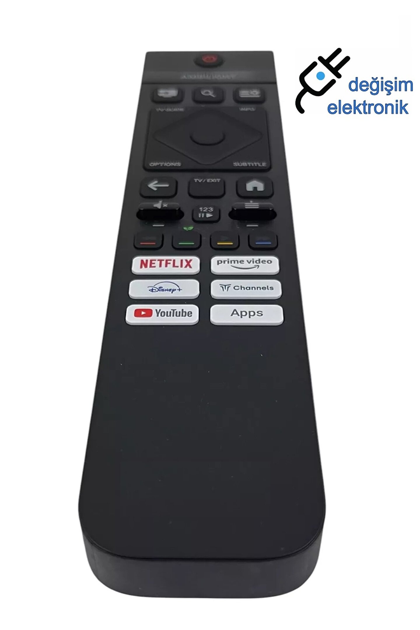 - 4K Android LED TV'ler için özel olarak tasarlanmış, Philip s 55PUS8050 modeliyle uyumlu kumanda.; - Ses komut özelliği bulunmayan, klasik kumanda tasarımı ile kullanım kolaylığı sağlar.; - Siyah renk seçeneğiyle modern ve şık bir görünüm sunar.; - CN menşeili olup, uluslararası standartlarda üretilmiştir.; - Tamir edilemez yapısıyla uzun ömürlü kullanım vaat eder.