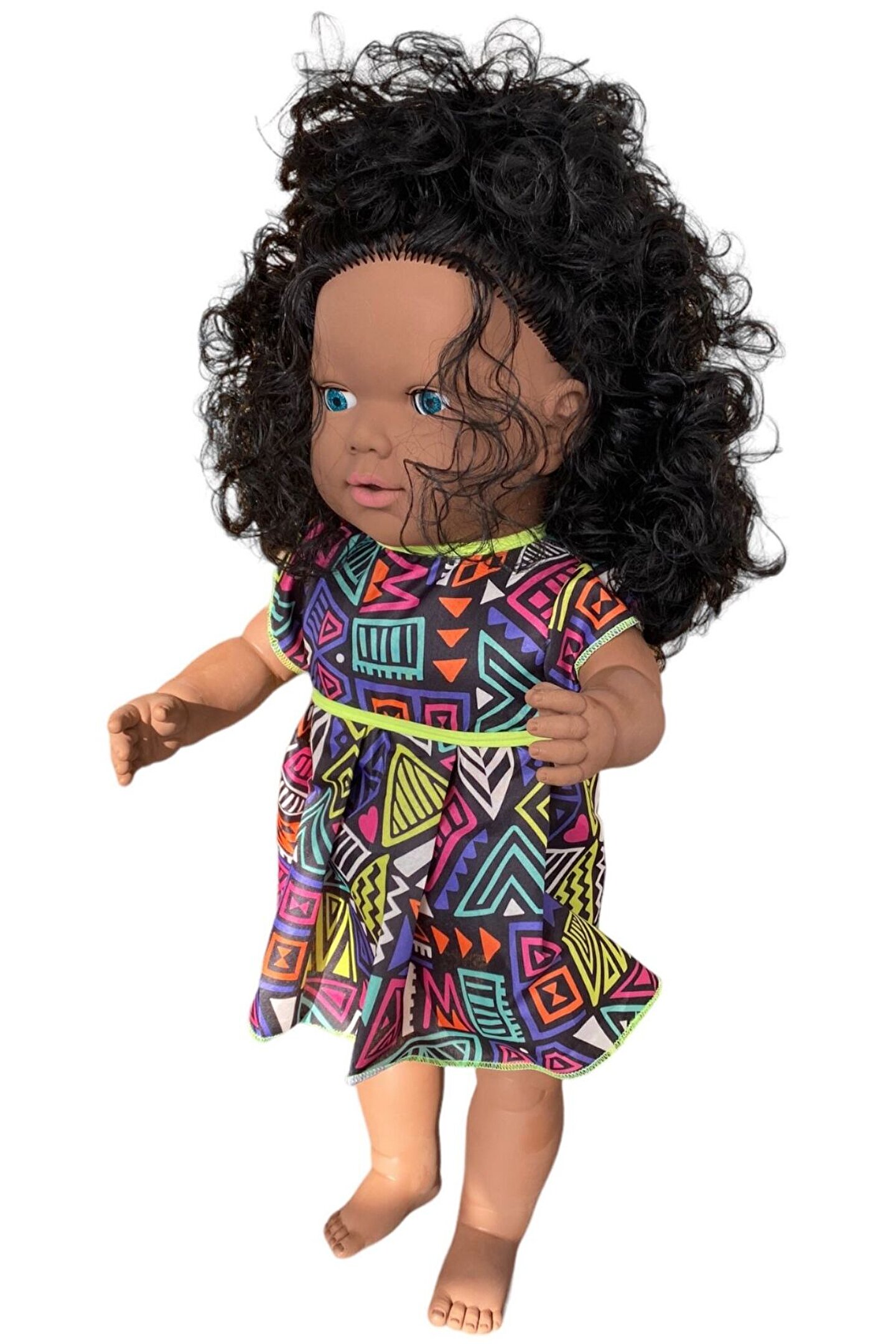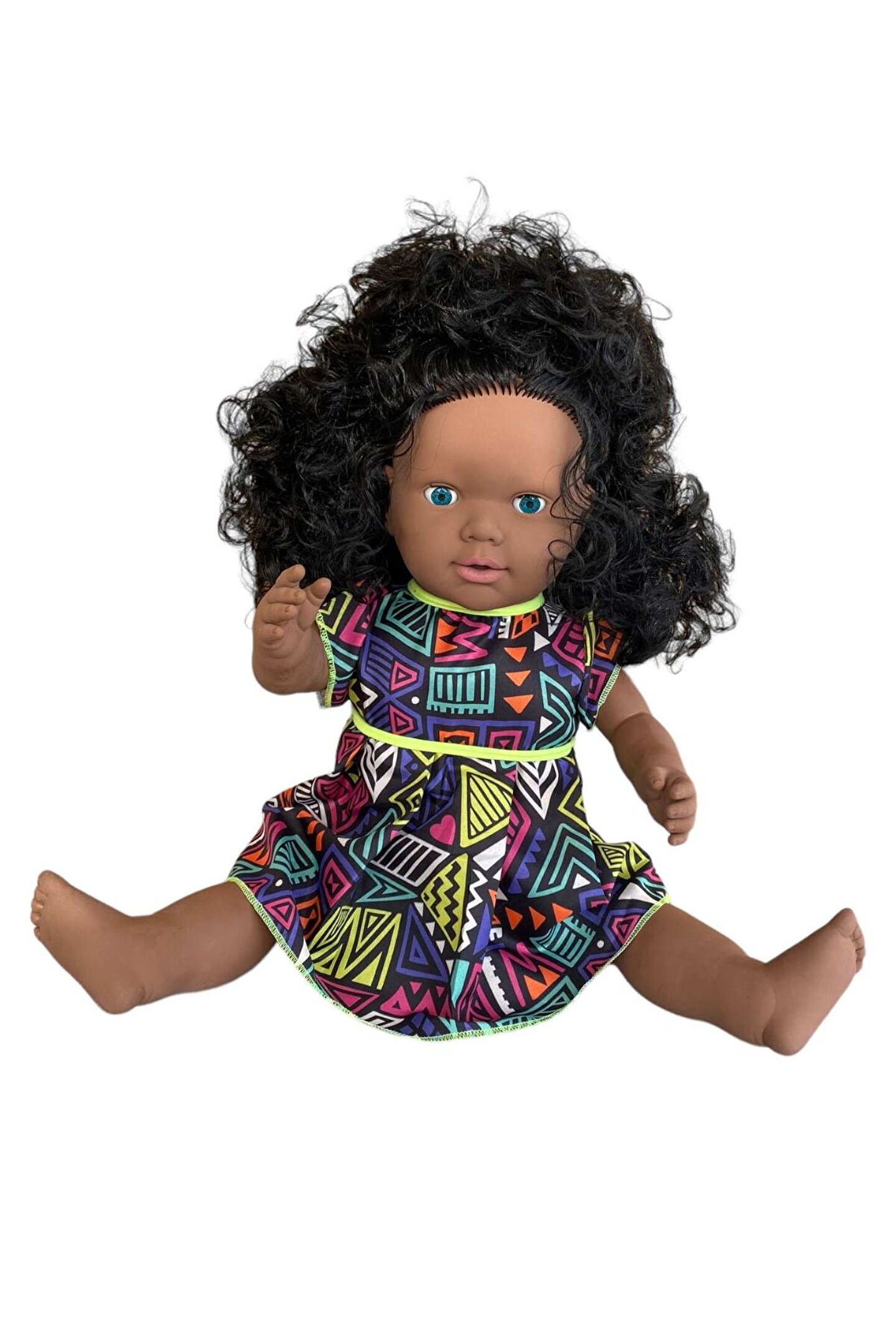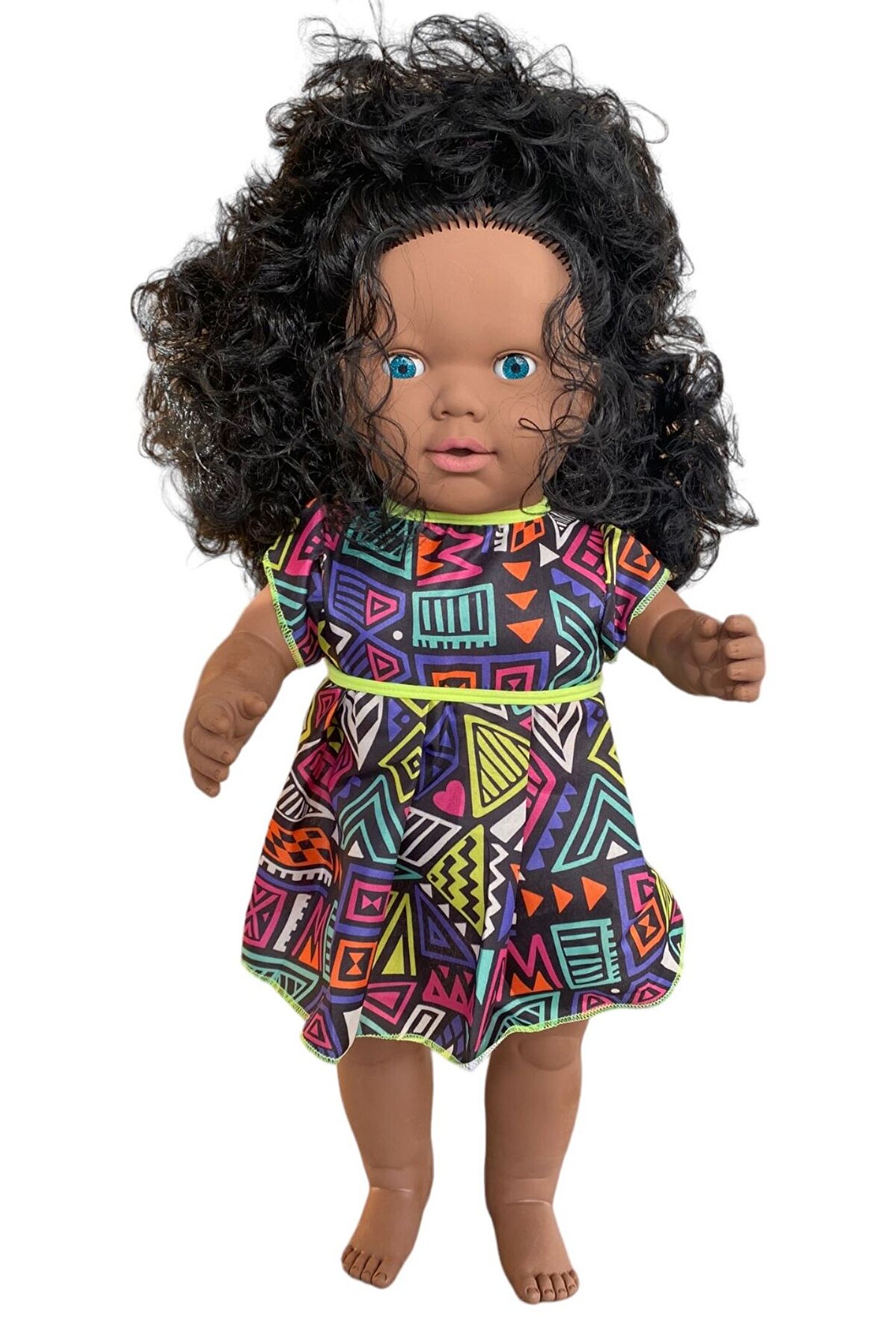 Gamze Oyuncak Büyük Boy Türkçe Konuşan Siyahi Çikolata Rengi Uzun Saçlı Et Bebek Oyuncak (60 CM)