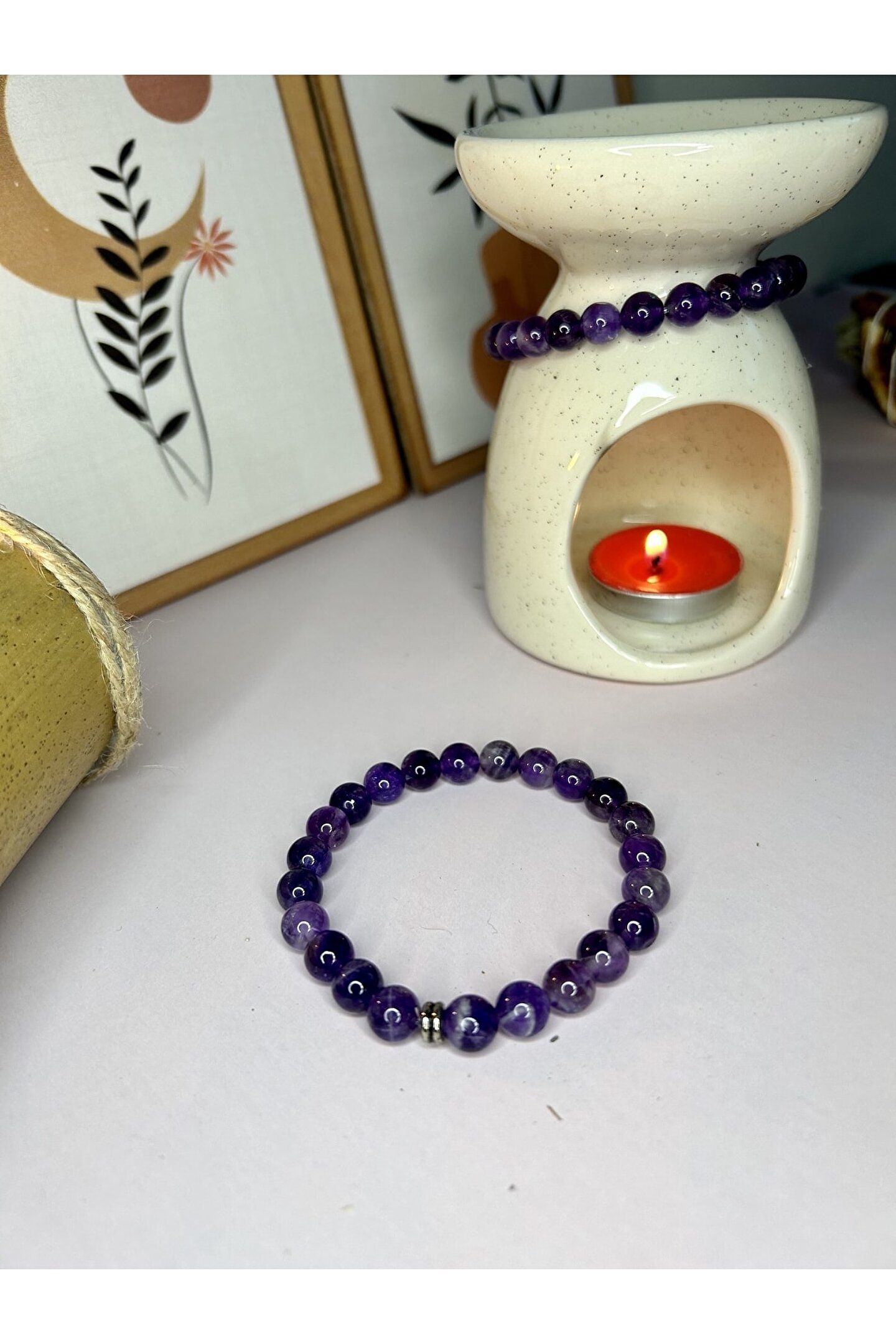 Doğal Ametist taşı kullanılarak üretilmiş, şıklığı ve zarafeti bir arada sunan bileklik; %100 orijinal ve sertifikalı Ametist taşı ile güvenle kullanabileceğiniz bir aksesuar; Ametist taşı, enerjiyi dengelemeye yardımcı olan ve stresi azaltan bir taştır; Bileklik, günlük kullanım için idealdir ve her türlü kıyafetle uyum sağlar;