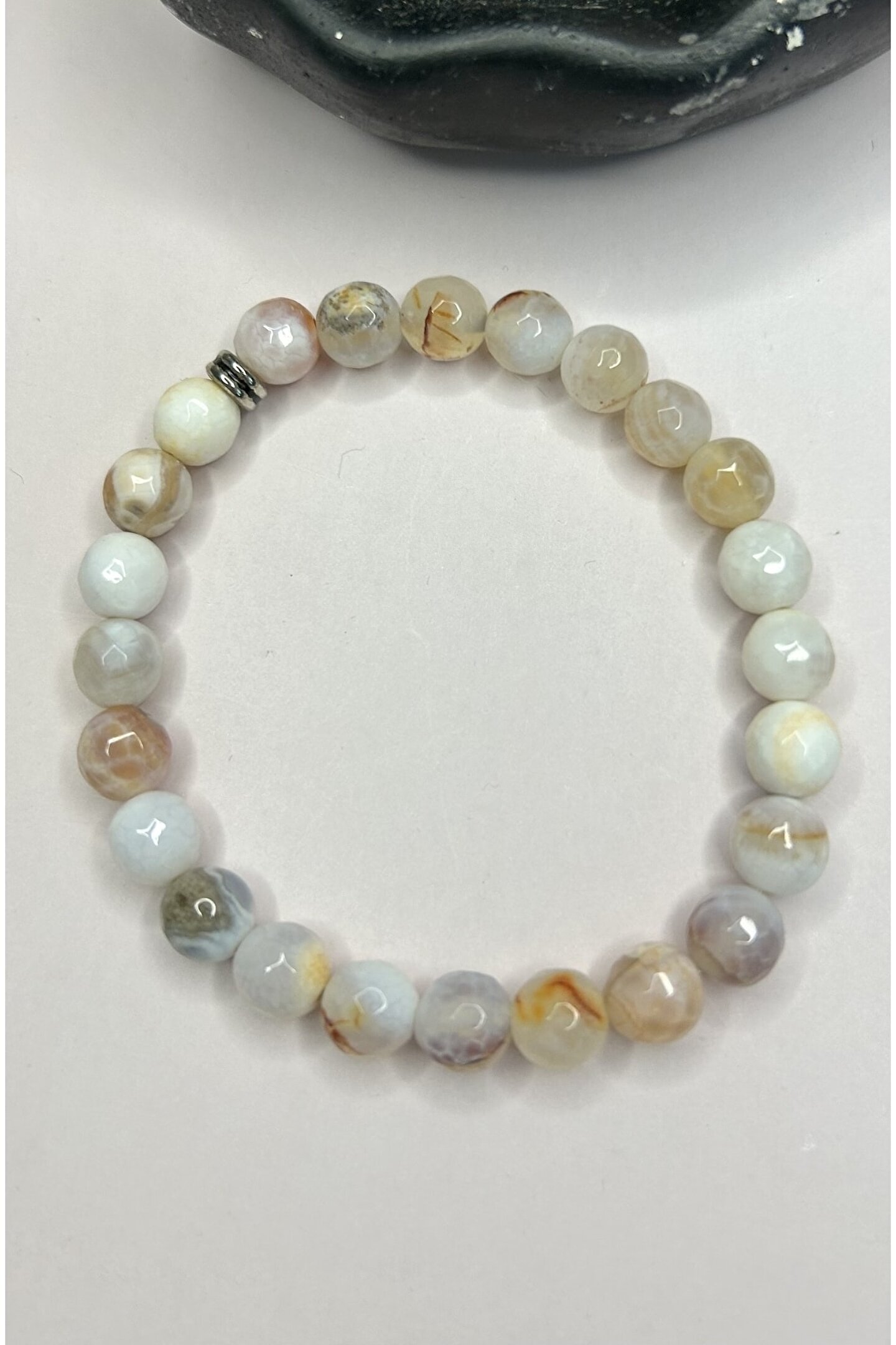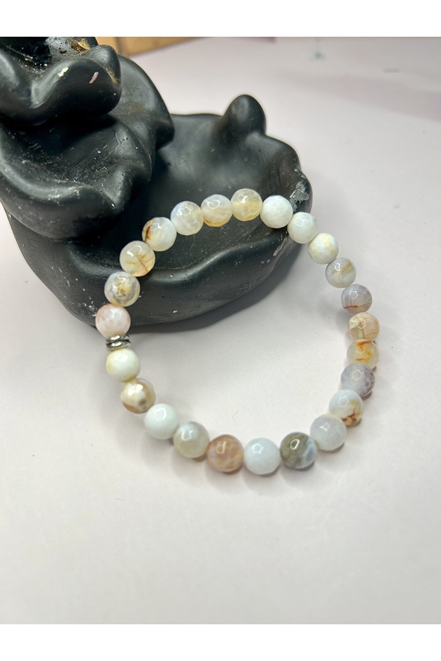 gattstone Beyaz Akik Doğal Taş Bileklik-%100 Orijinal