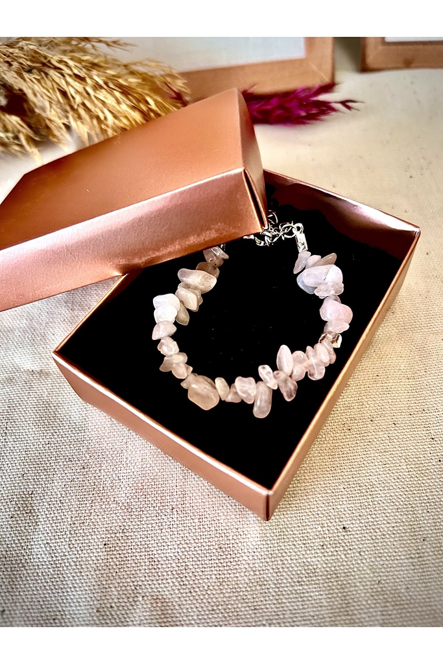 Pembe Kuvars Kırık Taş Bileklik koleksiyonumuz, doğanın armağanlarından ilham alarak tasarlanmıştır. ; Pembe kuvarsın canlı pembe tonlarıyla birlikte kırık taşların eşsiz güzelliğini bileğinizde taşımanız için tasarladık. ; Kırık taşlar, birleştirilerek bileğinize şaşırtıcı bir renk ve desen çeşitliliği sunar. ; Pembe kuvars, sevgi, şefkat ve uyumun taşı olarak bilinirken, kırık taşlar da yeniden doğuş ve dayanıklılığın sembolüdür. ; Bileğinize takarak, bu bileklikle hem içsel dengeyi sağlayabilir hem de hayatın süregelen değişimlerini simgelerken güçlü bir stil ifadesi sergileyebilirsiniz. ; Kişisel tarzınızı yansıtmak ve doğanın büyülü güzelliğini taşımak için Pembe Kuvars Kırık Taş Bileklik koleksiyonumuzu keşfedin. ; Bu bileklik, doğal ve etkileyici bir zarafetle sizi ve tarzınızı tamamlayacak.;