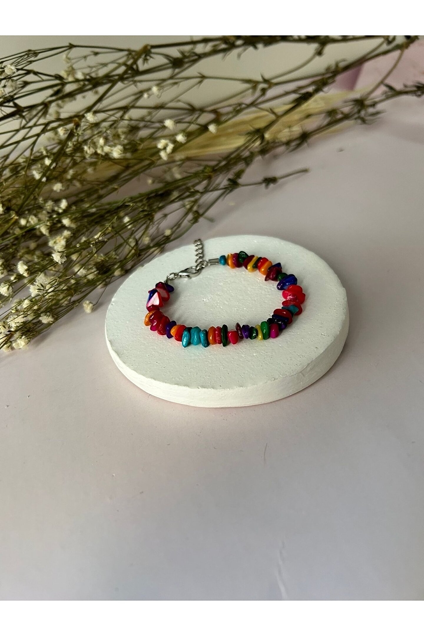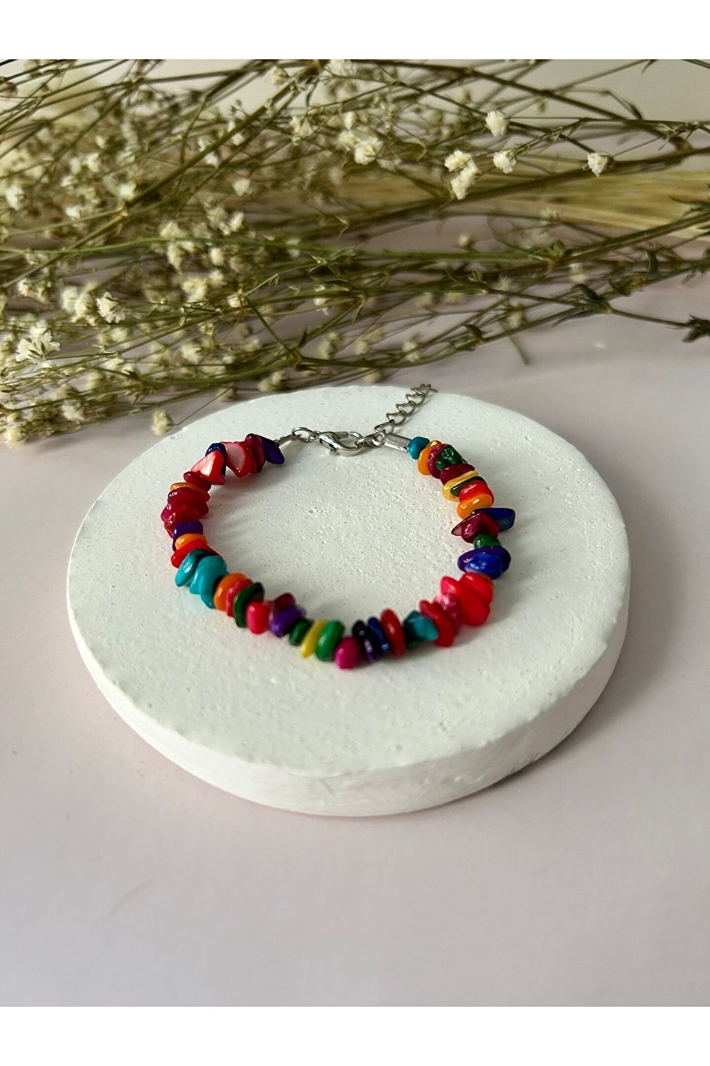 gattstone Doğal Renkli Sedef Kırık Taş Bileklik-%100 Orijinal