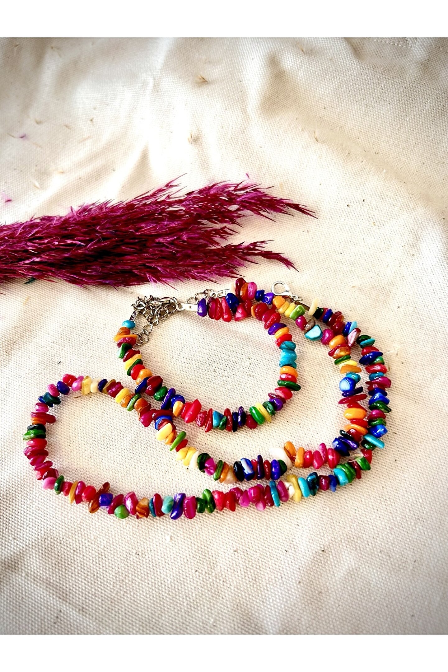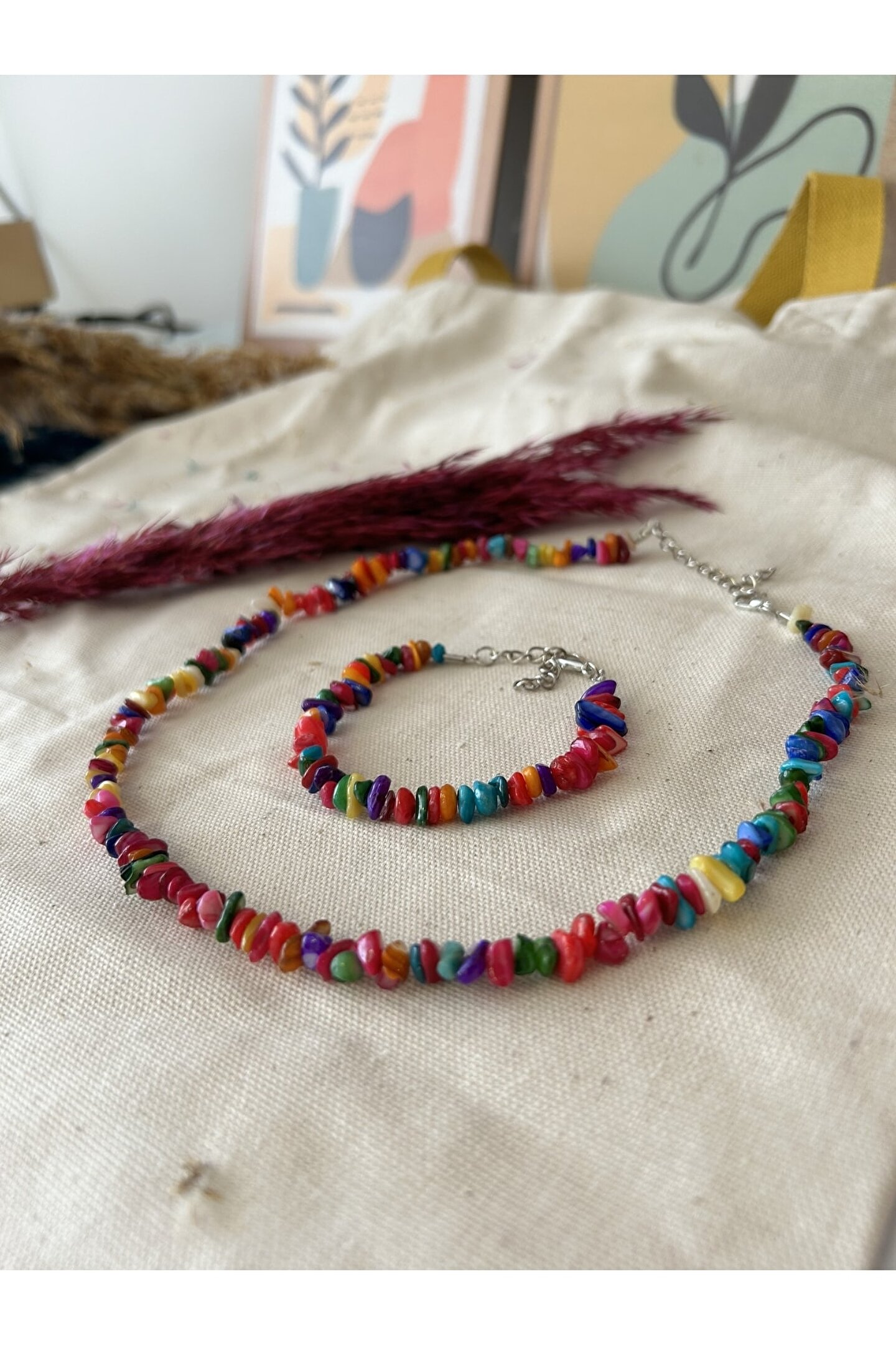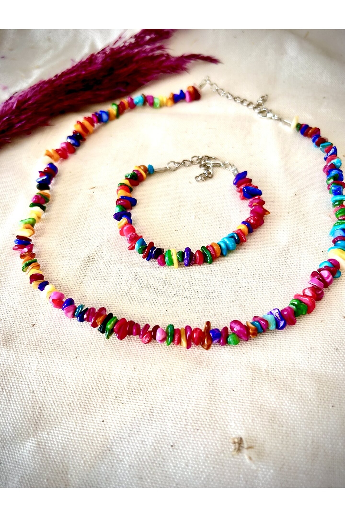 gattstone Doğal Renkli Sedef Kırık Taş Kolye Ve Bileklik Seti-%100 Orijinal