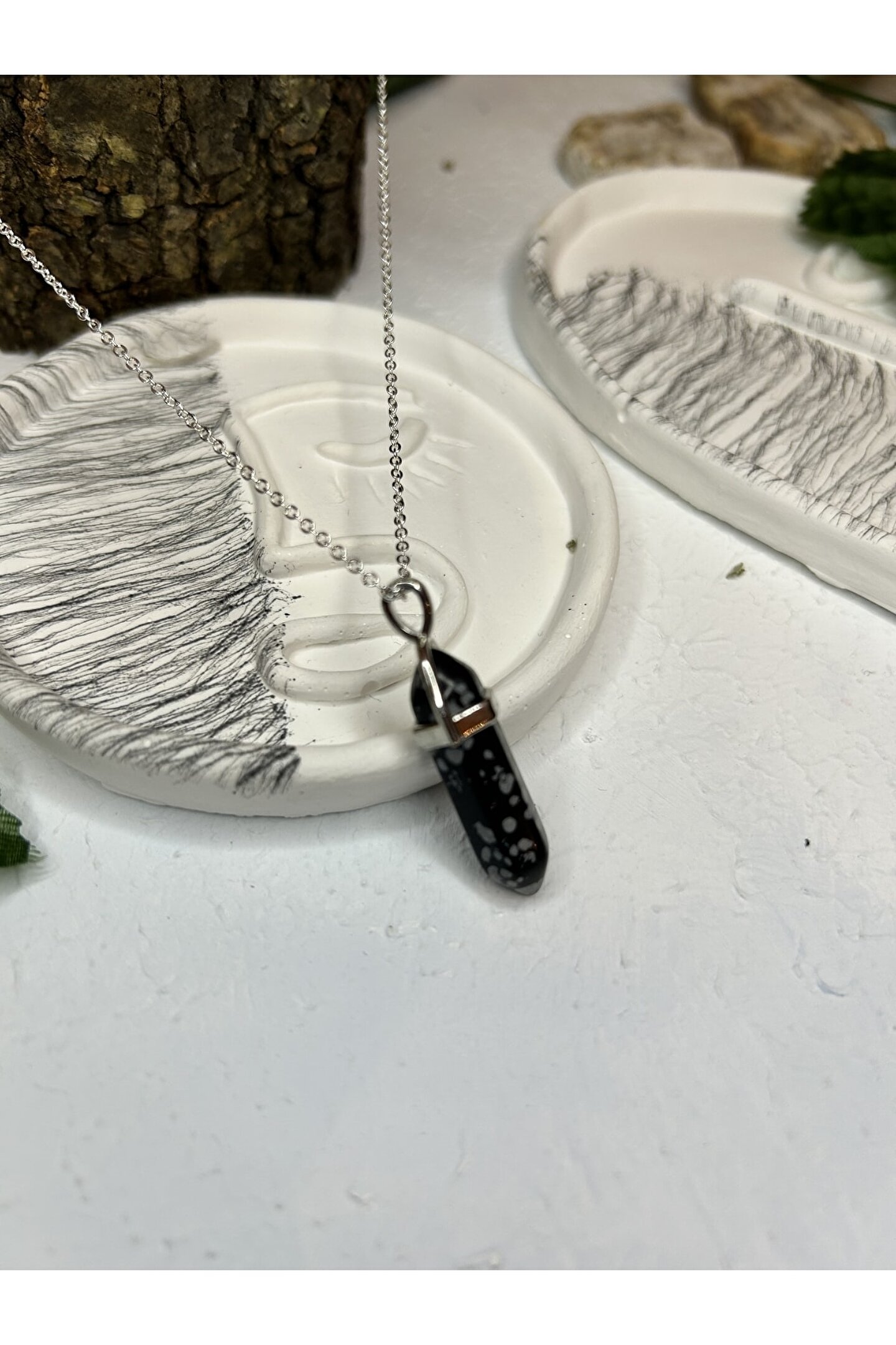 Doğal obsidyen taşı kullanılarak üretilmiş, şık ve zarif bir aksesuar;; Kolye, benzersiz ve doğal bir görünüm sunan taş cinsi ile dikkat çeker;; Taş materyali sayesinde uzun ömürlü kullanım ve dayanıklılık sağlar;;