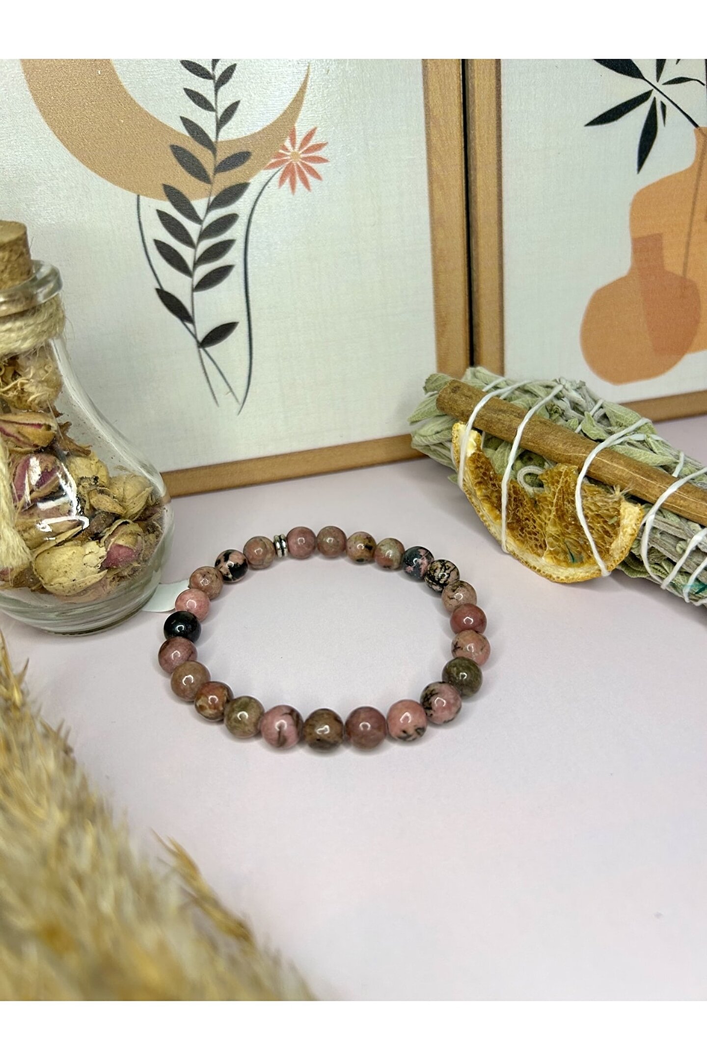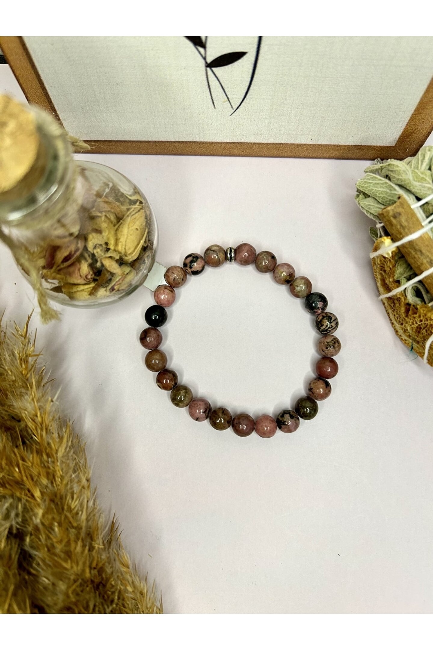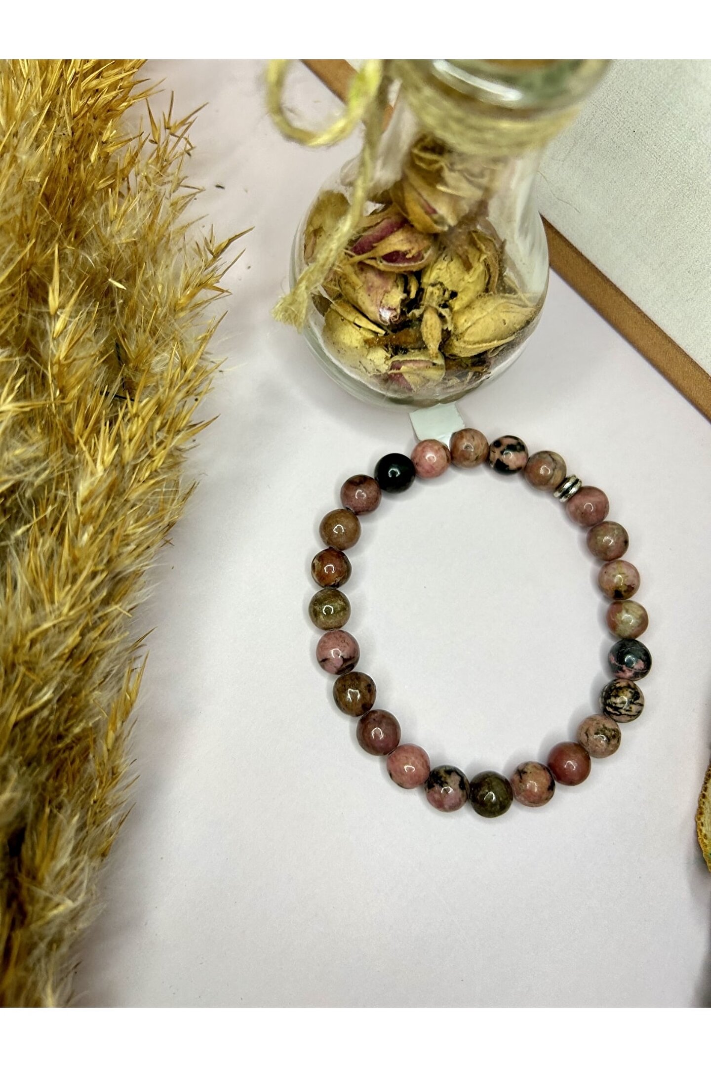 Doğal taş kullanımı sayesinde her bileklik benzersiz ve otantik bir görünüm kazandırır; - Rodonit taşı, bileklikte zarif bir parlaklık ve estetik bir dokunuş sağlar;