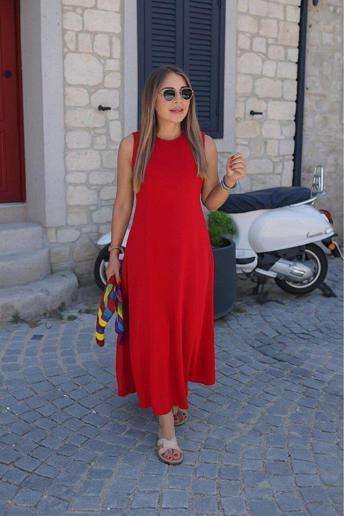 Kadın Sıfır Kollu Bisiklet Yaka Viskon Elbise