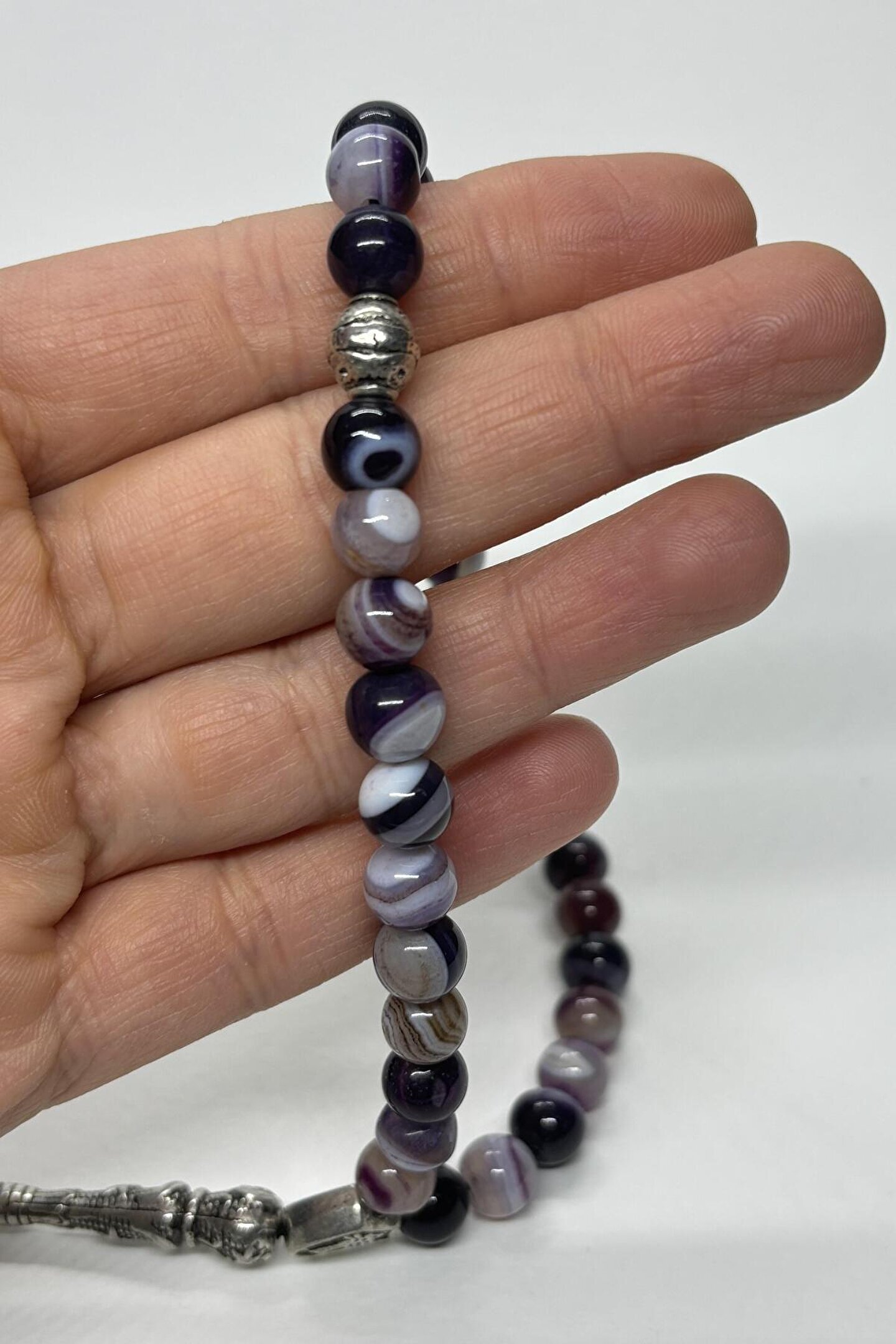gemsartdeco MOR AKİK İÇSEL HUKUK DOĞALTAŞ TESBİH