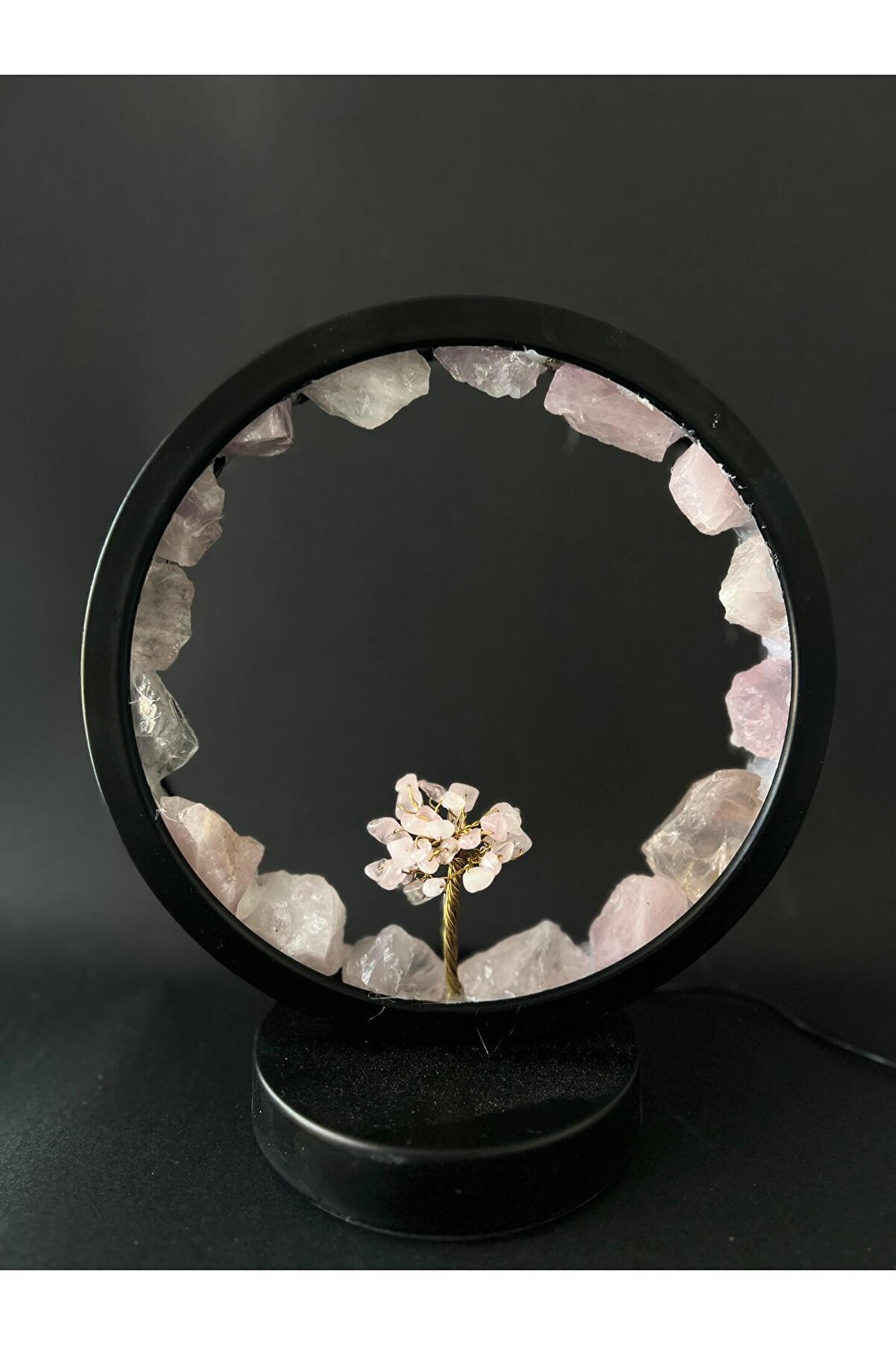 gemsartdeco PEMBE KUVARS DOĞALTAŞ GECE LAMBASI PRİZLİ