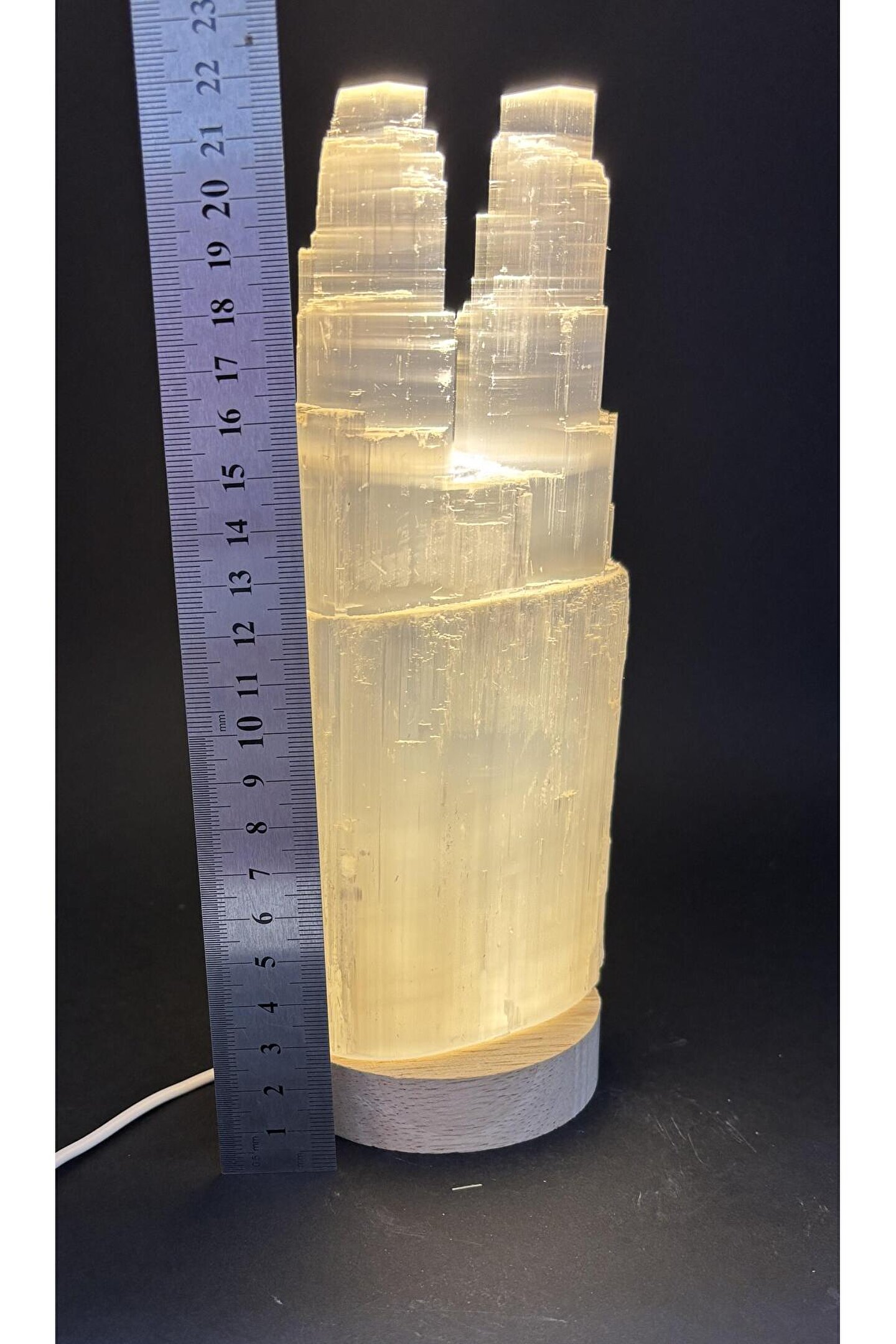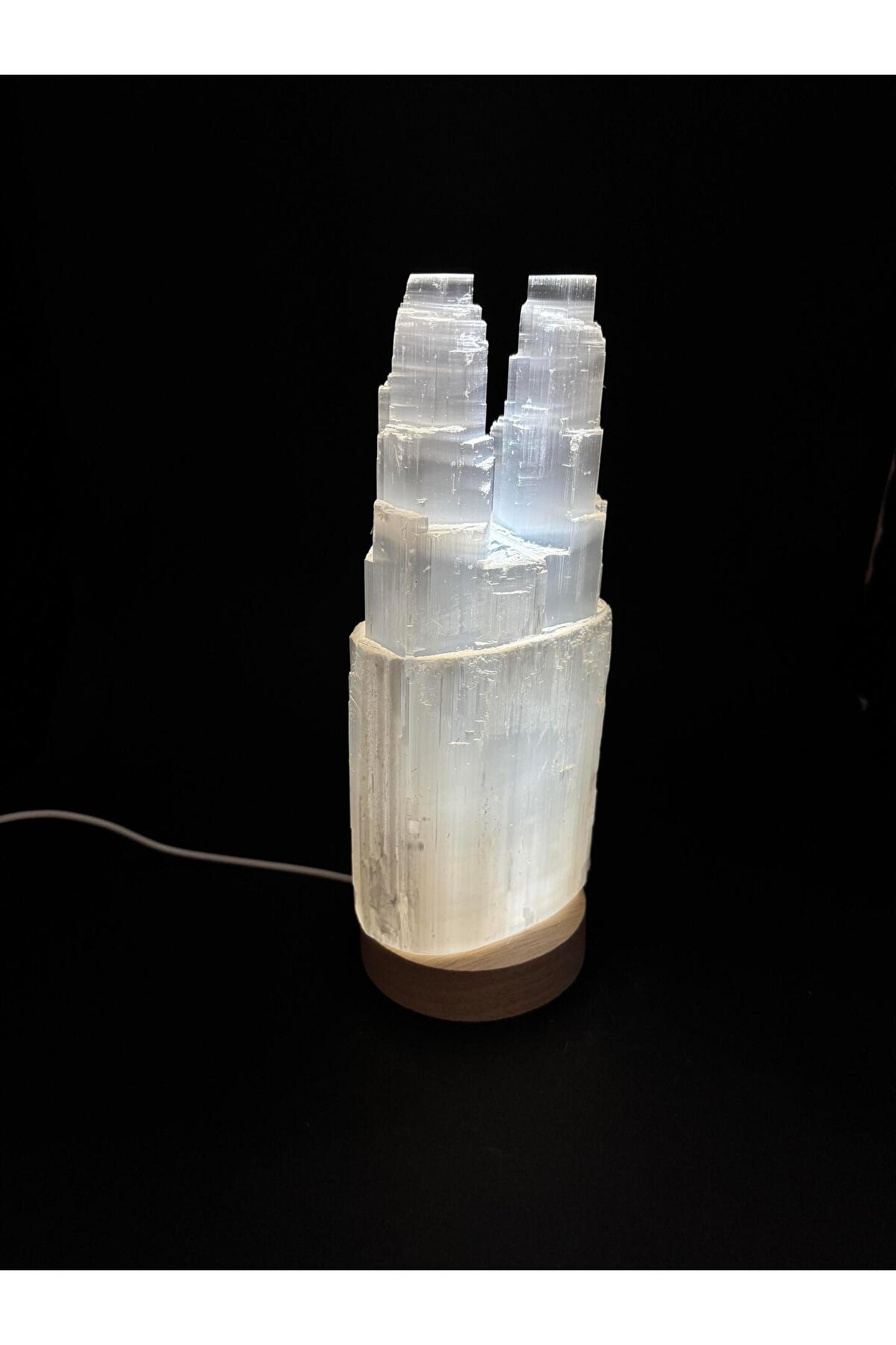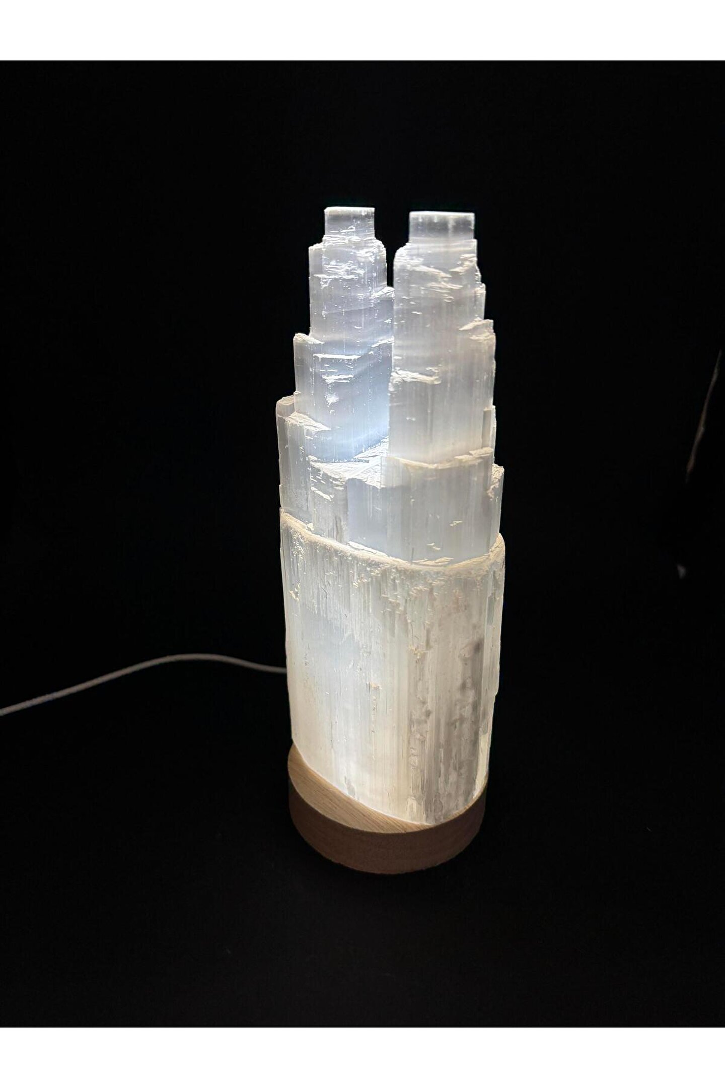gemsartdeco SELENİT DOĞALTAŞ TWİN TOWER DAR LAMBA 20 CM