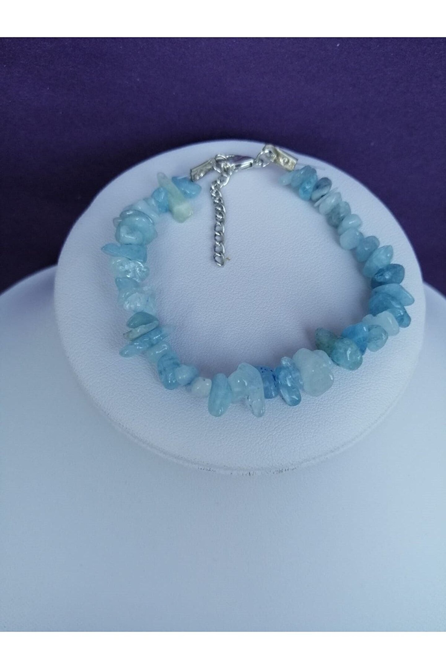 Doğal taş kullanımı sayesinde her parça benzersiz ve otantik bir görünüm sunar; Akuamarin taşı, hem kolye hem de bileklikte kullanılarak şıklığınızı tamamlayıcı bir aksesuar oluşturur; Kırık doğaltaş tasarımı, modern ve trend bir stil ifade ederken, aynı zamanda doğanın güzelliklerini yansıtır; Akuamarin'in parlak mavi tonu, enerjik ve canlı bir görünüm sağlar;