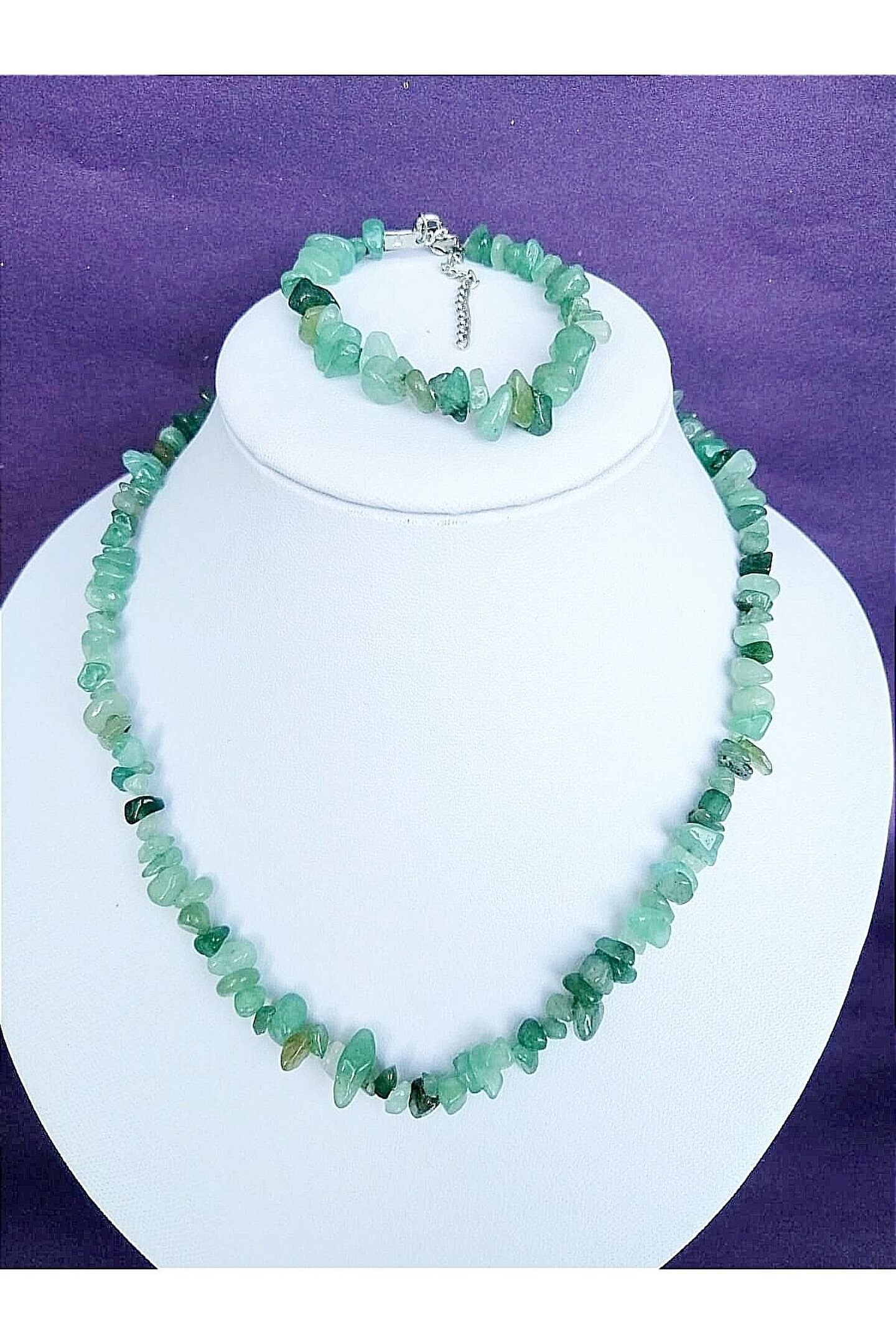 Doğal taş kullanımı sayesinde her parça benzersiz ve otantik bir görünüm sunar; Aventurin kolye bileklik seti, şıklığınızı tamamlayacak zarif bir aksesuar seçeneği olarak öne çıkar; Gerçek doğaltaş kullanımı, takının hem dayanıklılığını hem de estetik değerini artırır; Aventurin taşı, enerjiyi dengelemeye yardımcı olan ve pozitif bir etki yaratmayı amaçlayan bir taştır; Kolye ve bileklik seti, günlük kullanım için idealdir ve her türlü kıyafetle uyum sağlar;