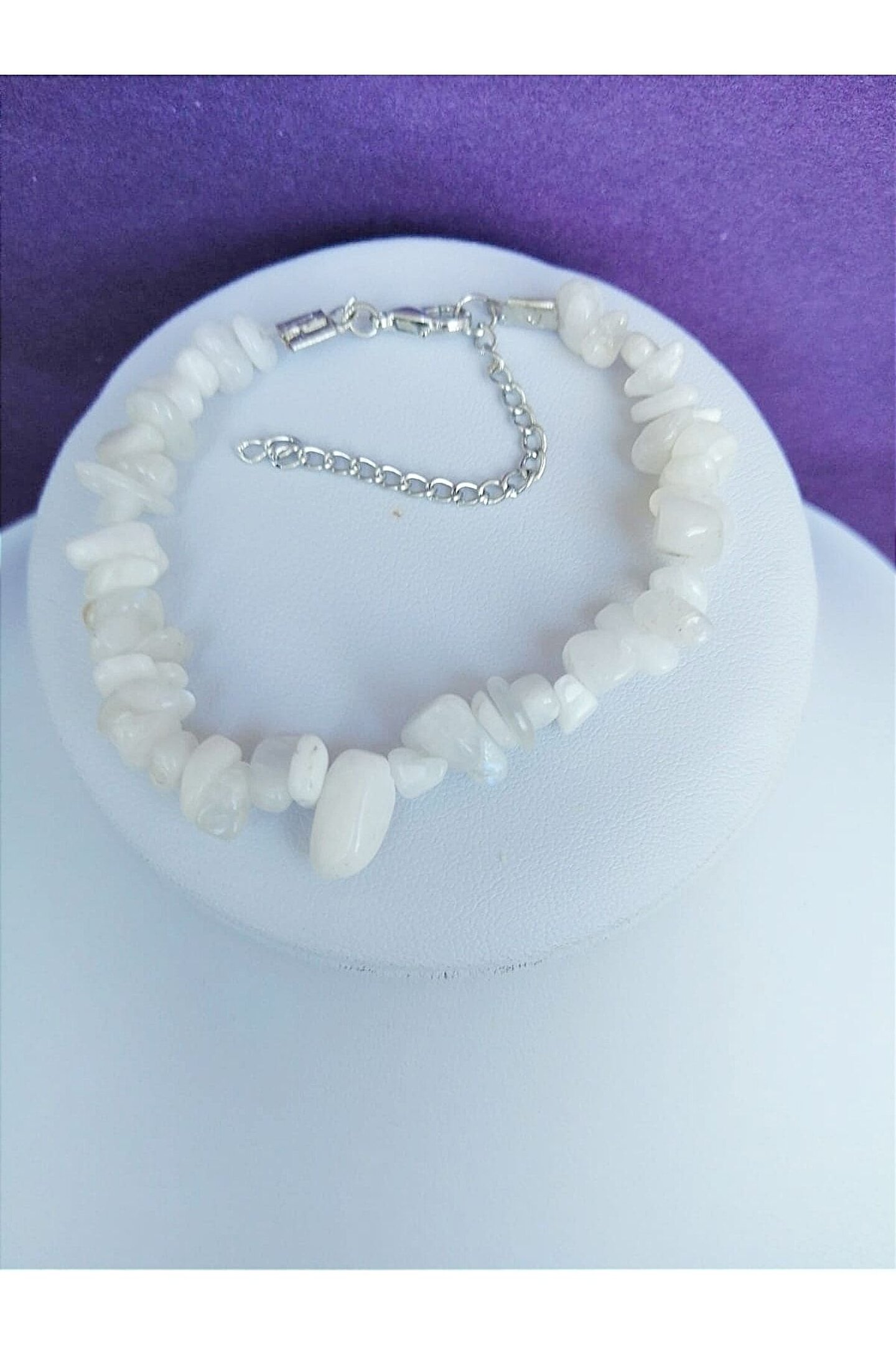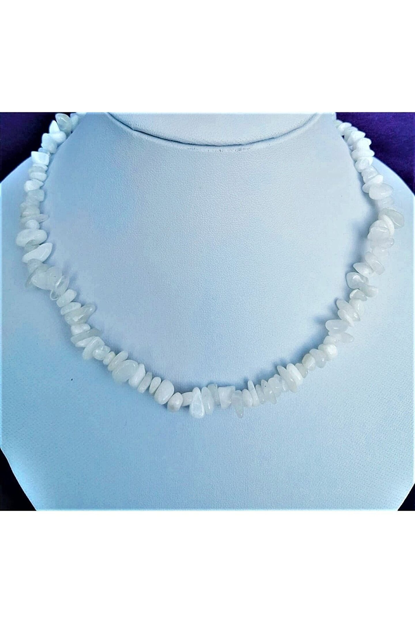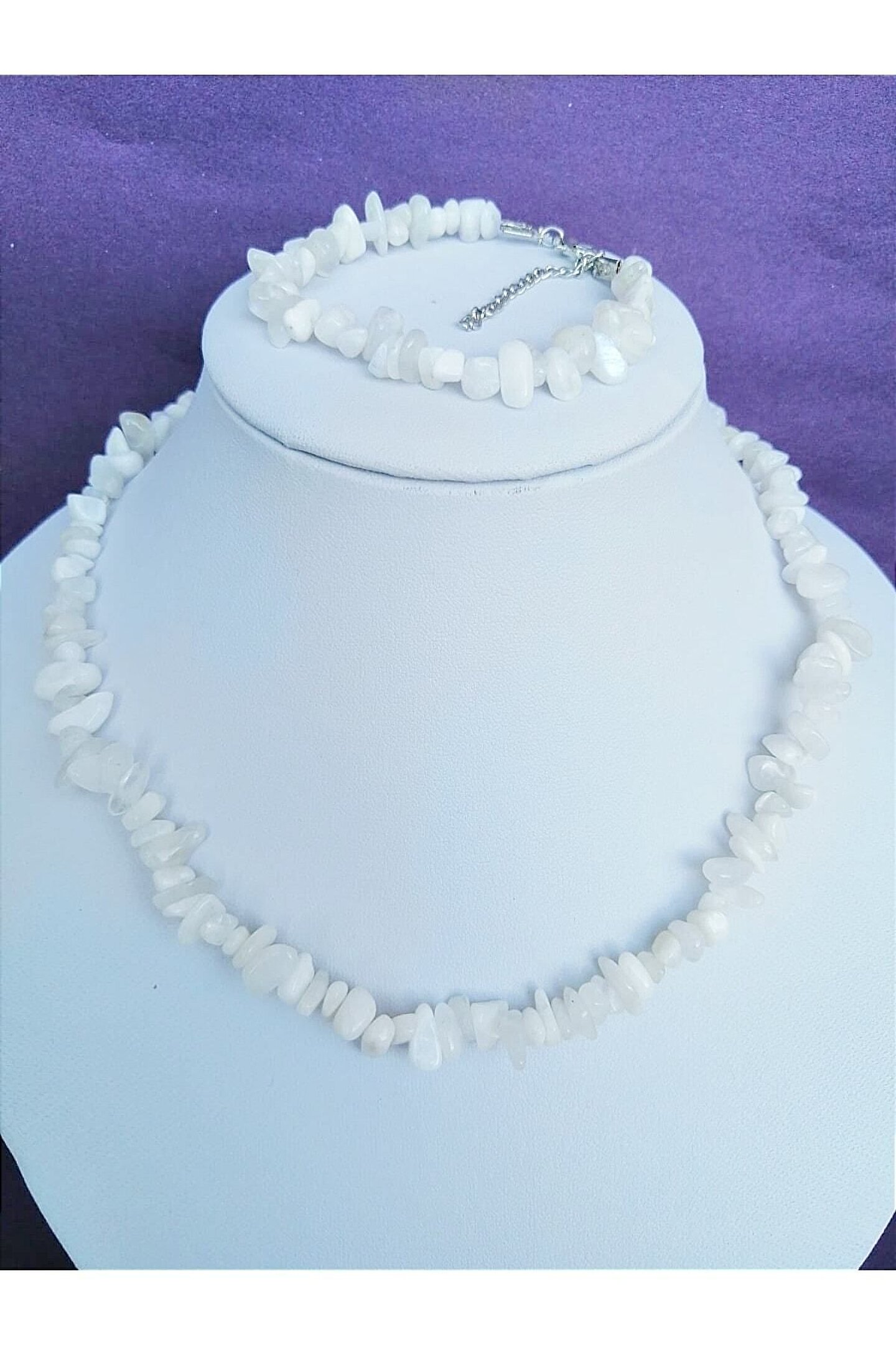 Gena stone Ay Taşı Kolye Bileklik Set - Doğaltaş Takı - Gerçek Aytaşı Kırık Doğaltaş