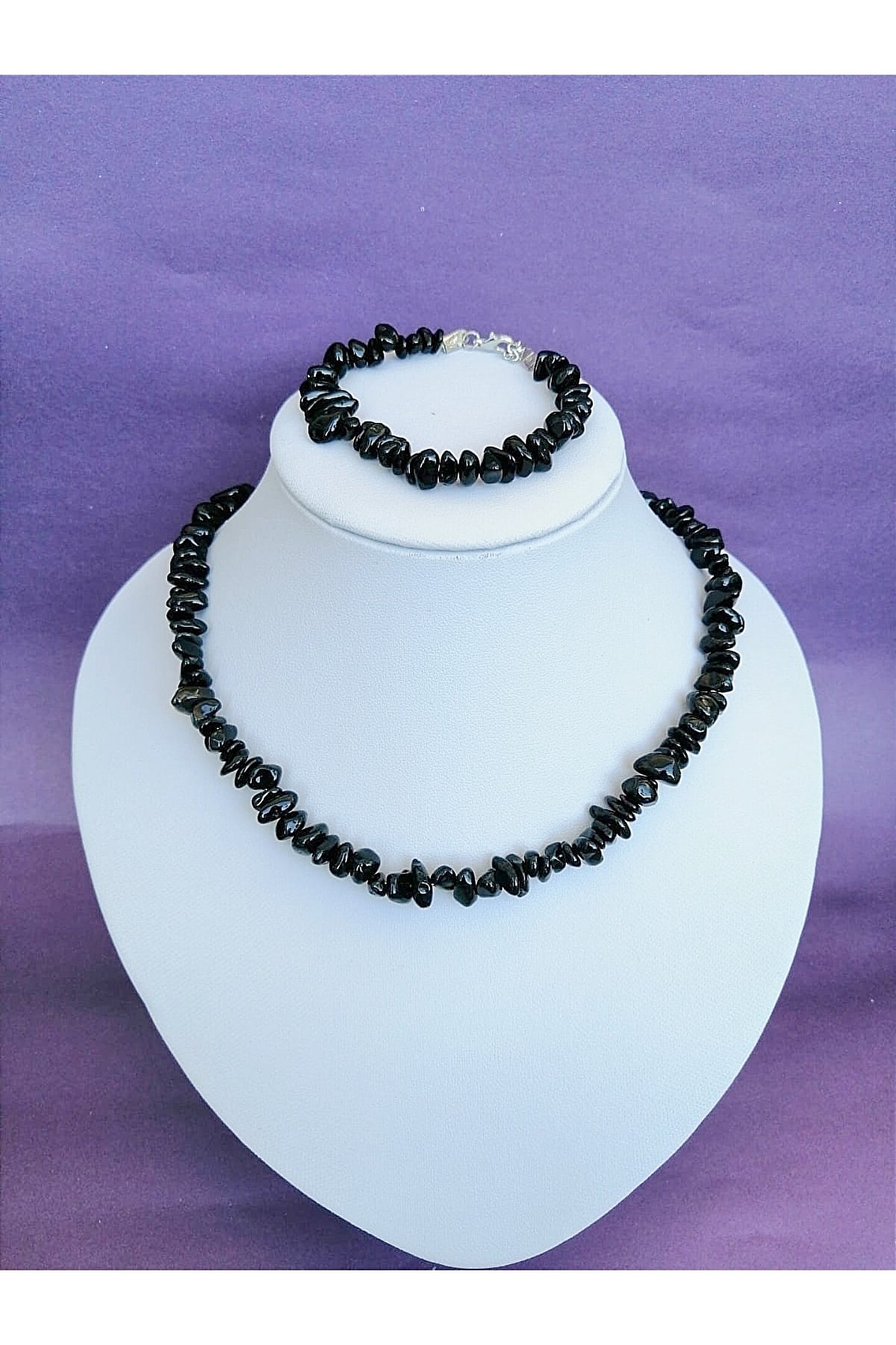 Doğal obsidyen taşı kullanılarak üretilmiş, şık ve zarif bir aksesuar; Gerçek obsidyen doğaltaşın eşsiz dokusu ve rengiyle dikkat çeken bir tasarım; El işçiliği ile özenle hazırlanmış, her bir parça benzersiz bir görünüm sunar; Kolye, günlük kullanım için idealdir ve farklı kıyafet kombinlerinizle uyum sağlar;