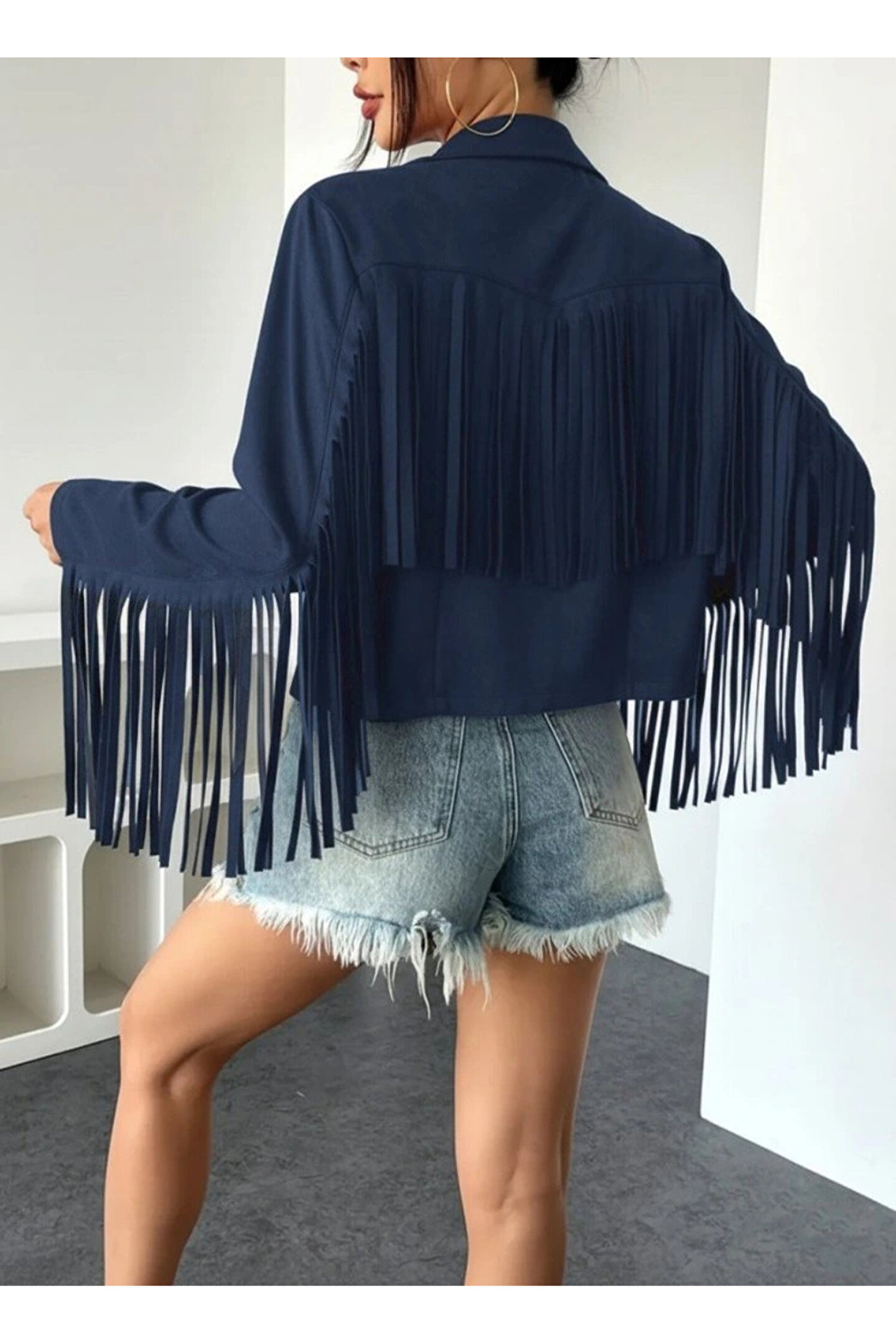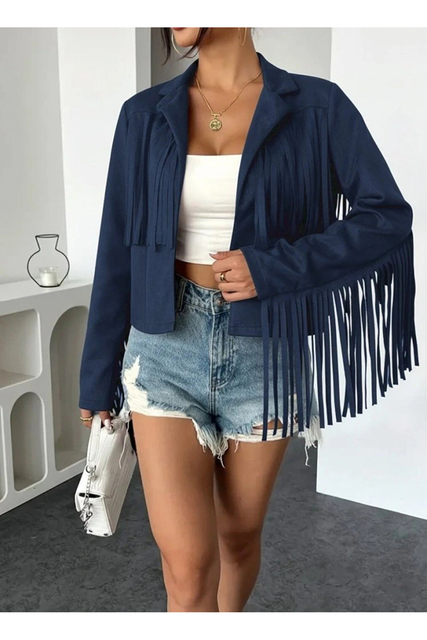 Kadın Uzun Kollu Yakalı Kısa Püsküllü Süet Ceket